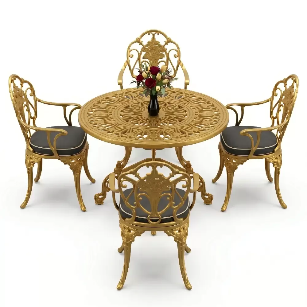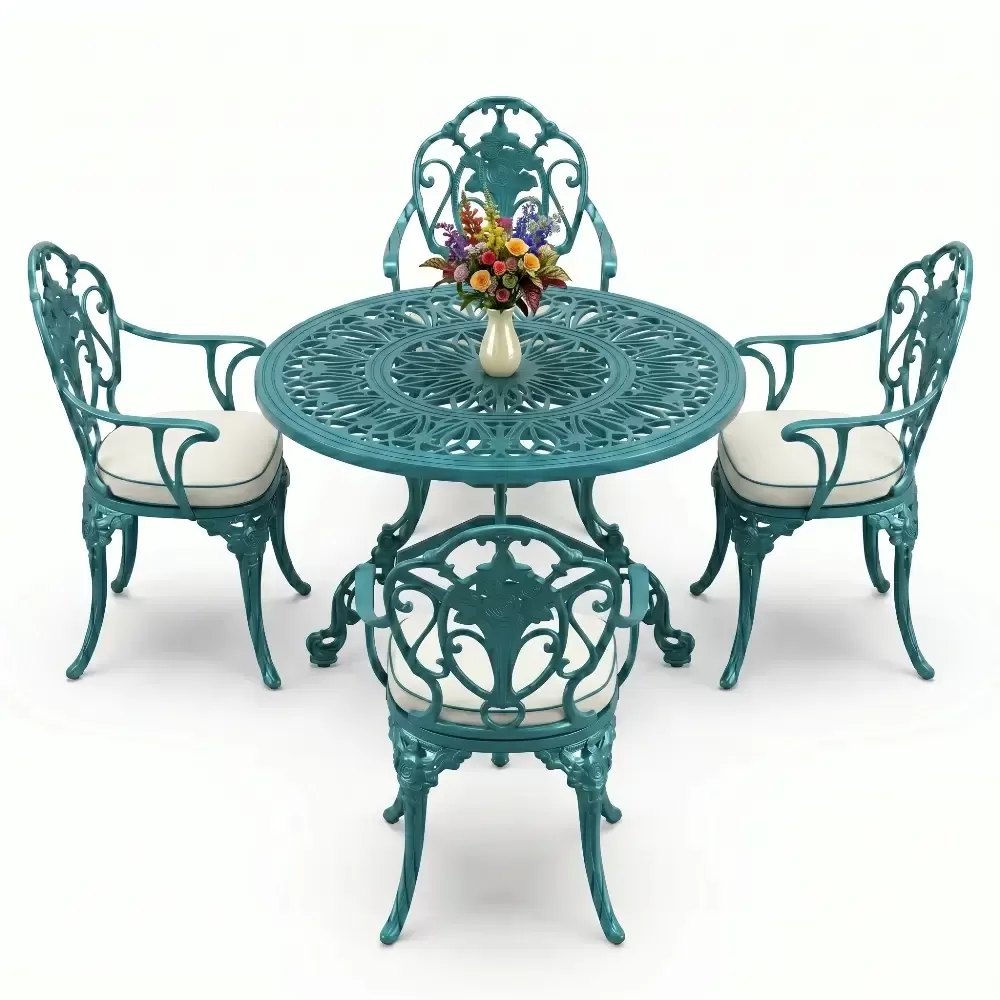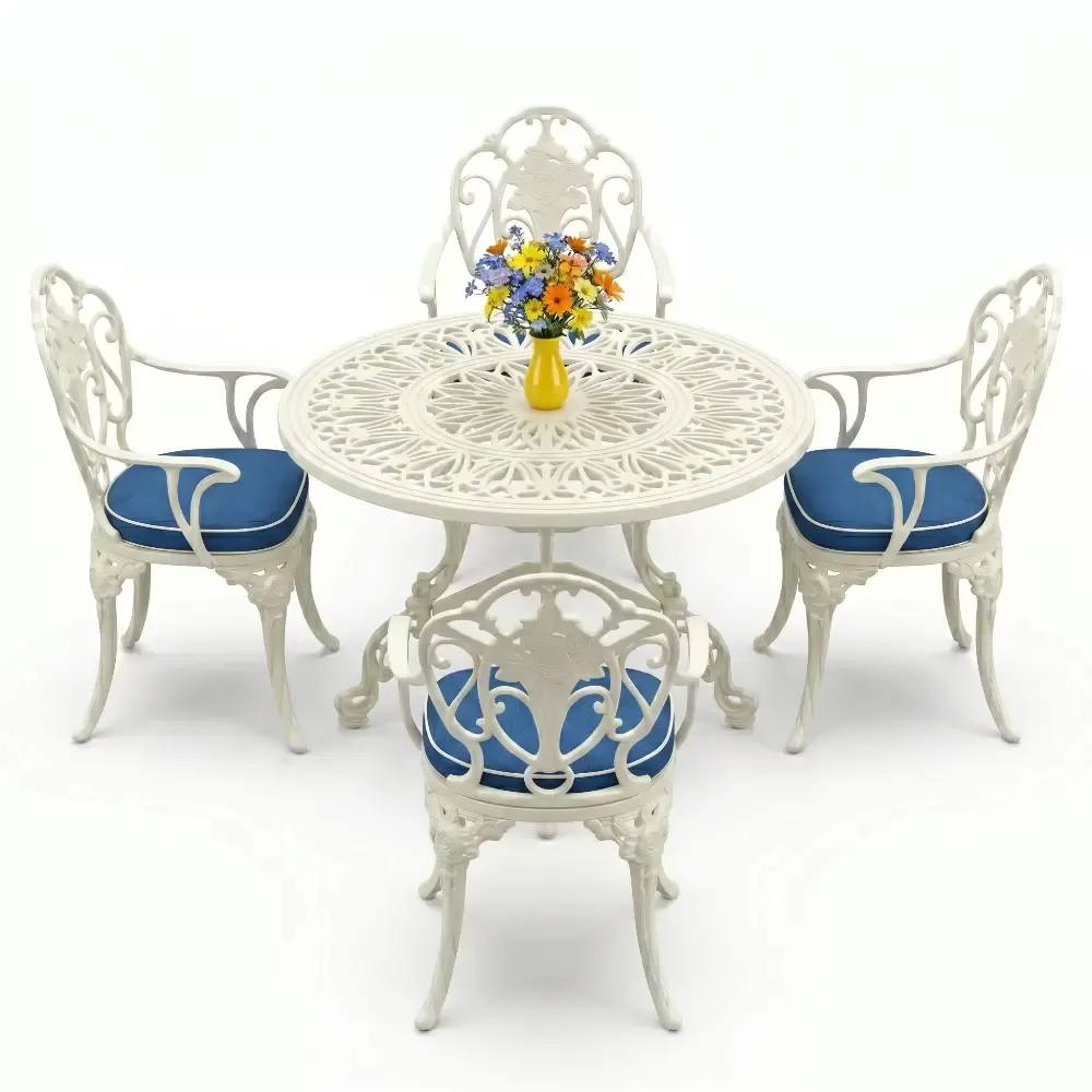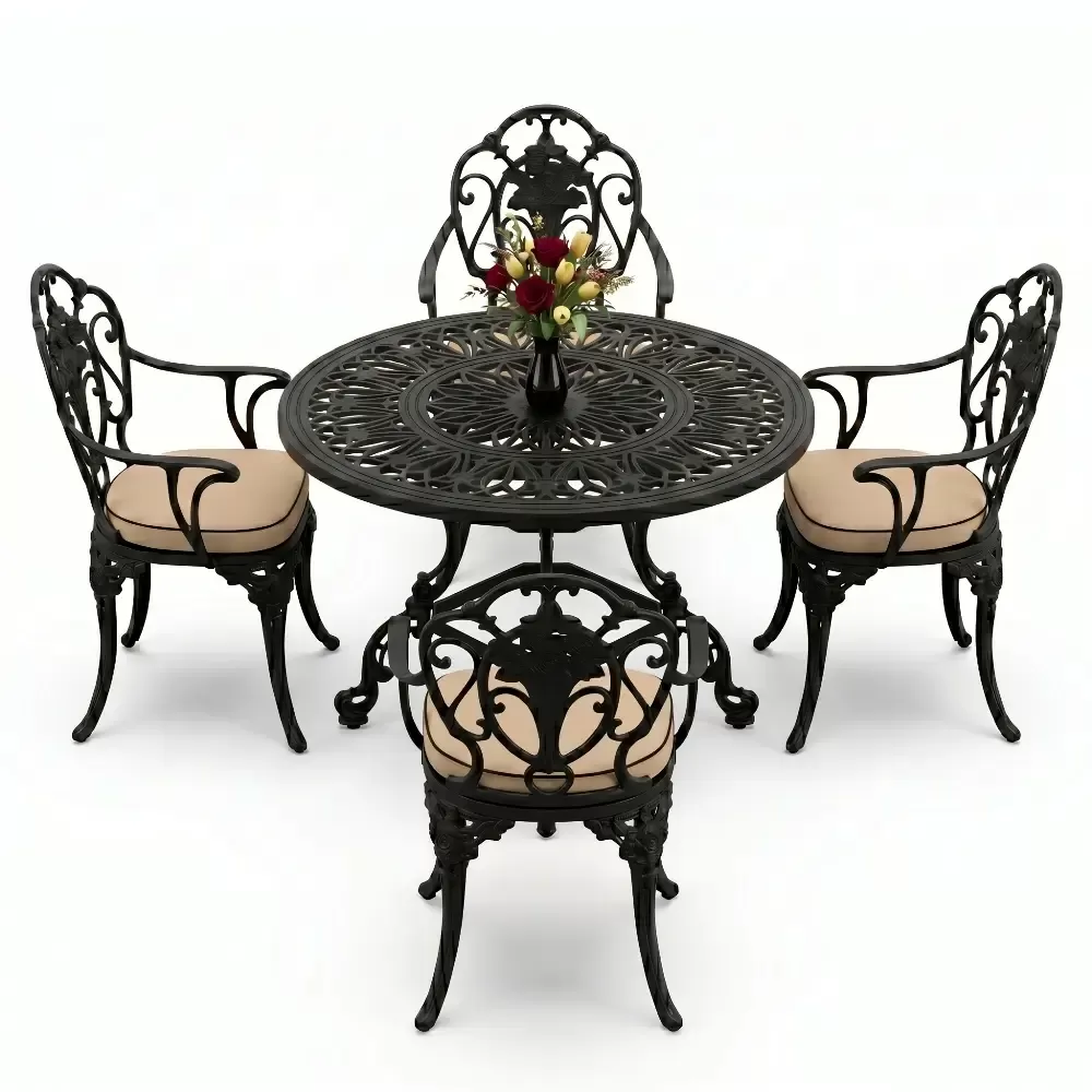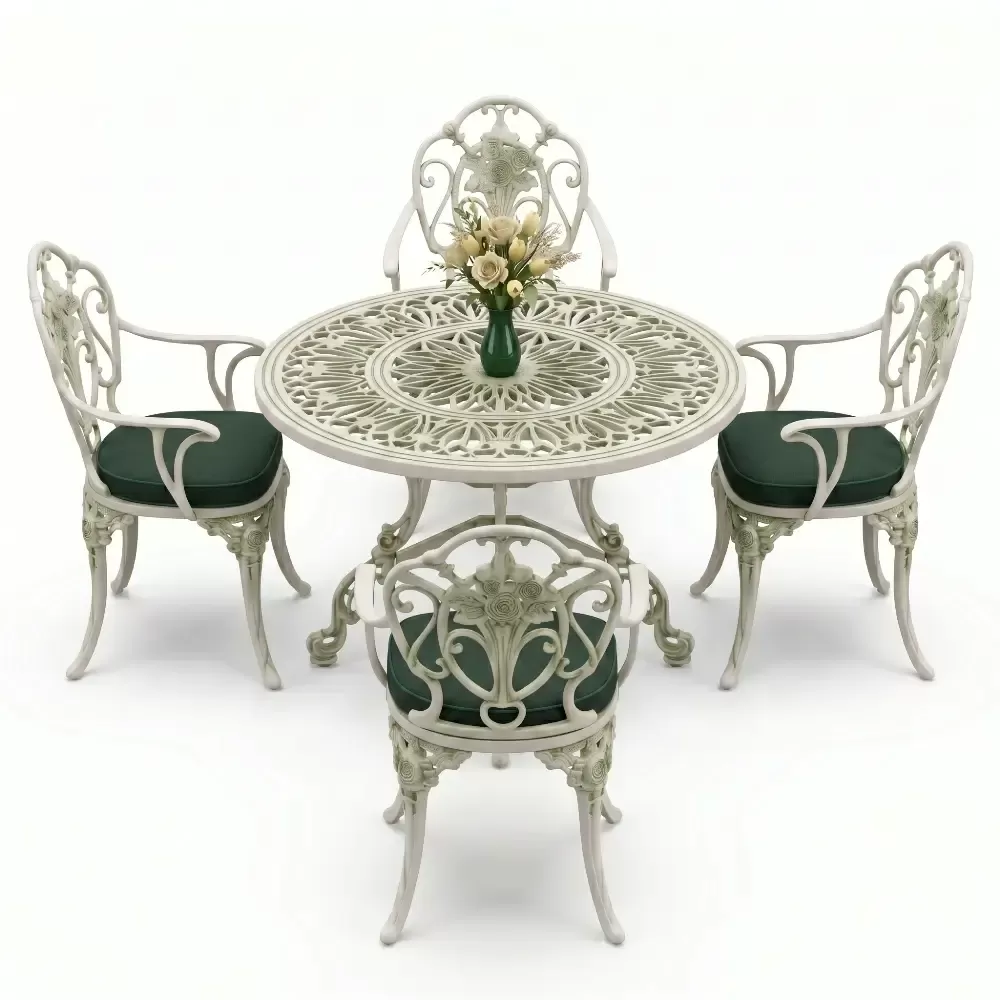 Yuvarlak Masa E:100 x D:100 x Y:72 cm 4 Kişilik alüminyum döküm masa ve sandalye takımı (Mindersiz Fiyatı)