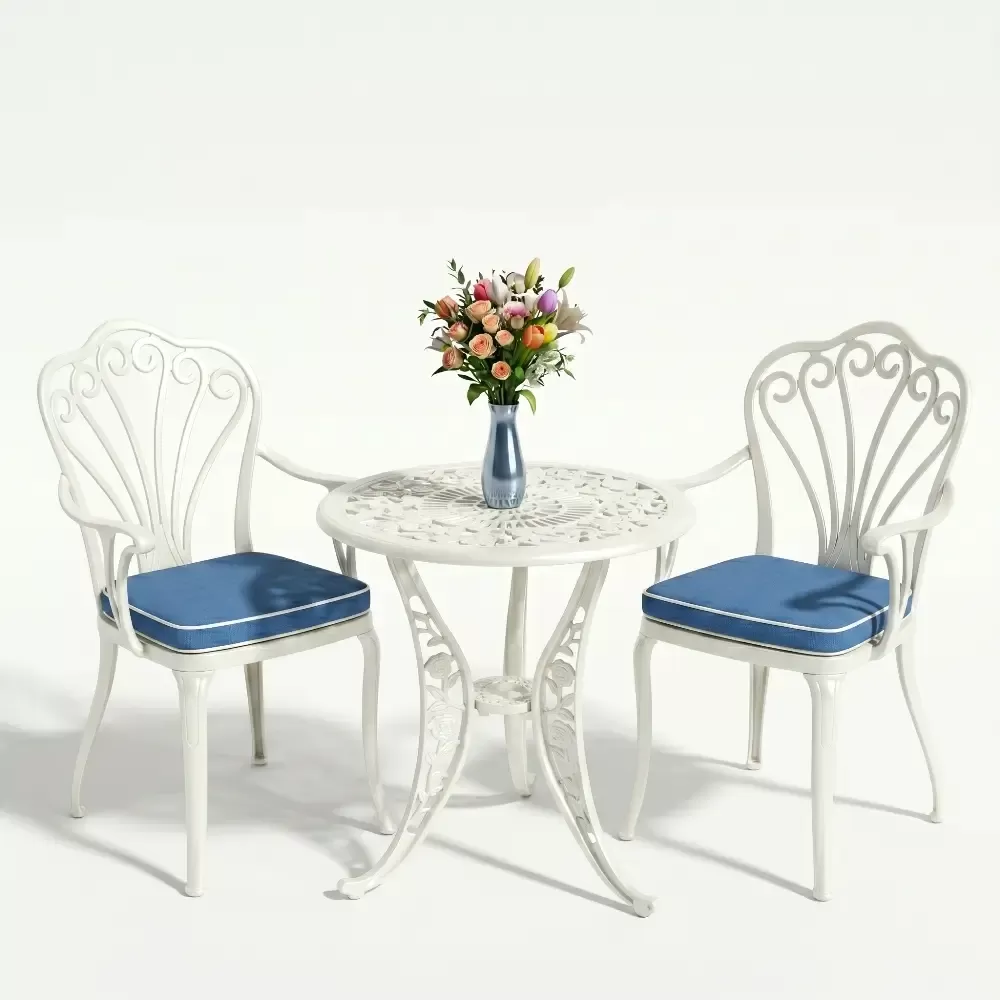 Bahçe, balkon ve teras gibi dış mekanlarda şıklığı ve sağlamlığı bir arada arayanlar için Akbrella-nın 21 CAS serisi ideal bir çözümdür. Geleneksel ferforje sanatının estetiğini modern alüminyum döküm teknolojisi ile birleştiren bu set, iki kişilik kapasitesiyle kompakt ve zarif bir kullanım sunar. 61x61 cm ölçülerindeki yuvarlak masa formu, sosyal etkileşimi artıran ergonomik bir yapı sunarken en dar alanlarda dahi ferah bir atmosfer oluşturur.