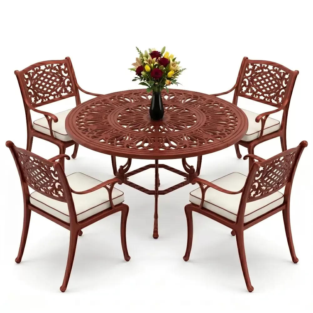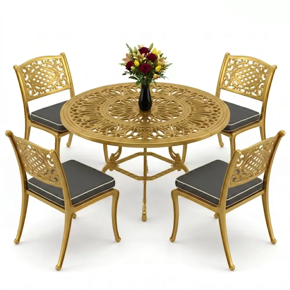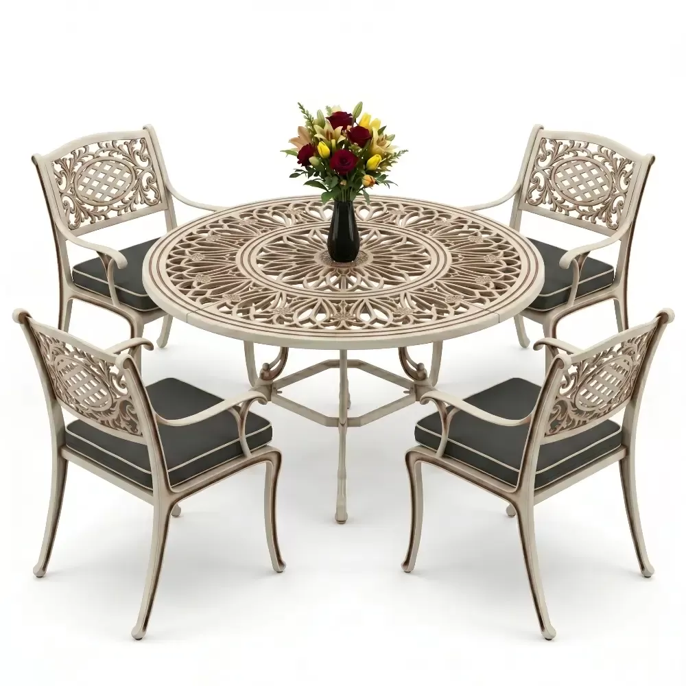 Yuvarlak Masa E:100 x D:100 x Y:72 cm 4 Kişilik alüminyum döküm masa ve sandalye takımı (Mindersiz Fiyatı)