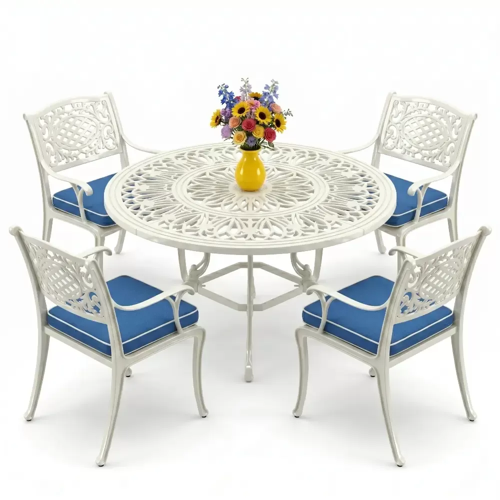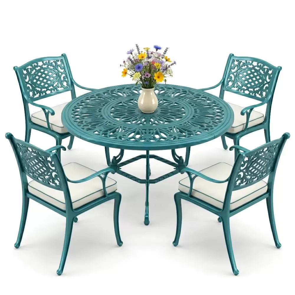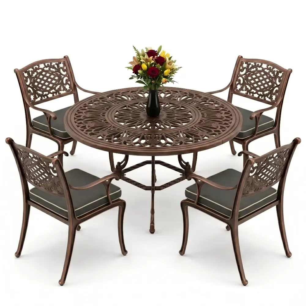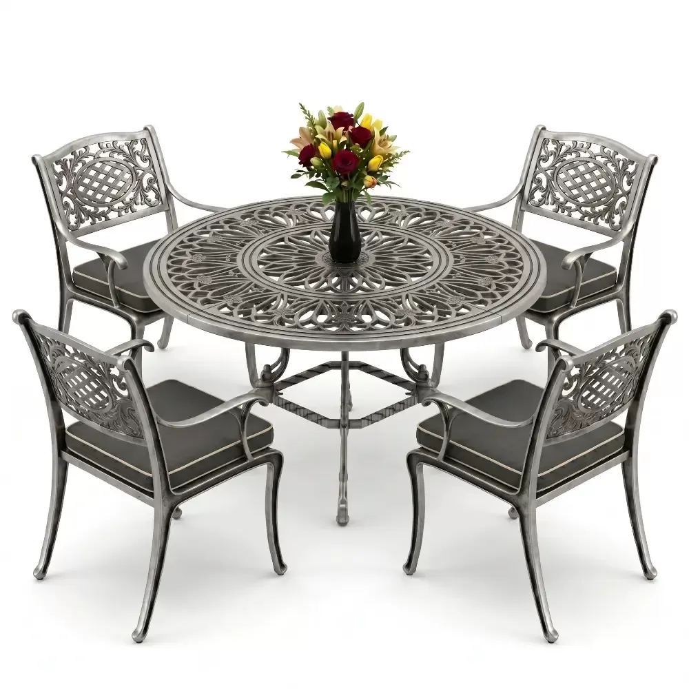 Yuvarlak Masa E:100 x D:100 x Y:72 cm 4 Kişilik alüminyum döküm masa ve sandalye takımı (Mindersiz Fiyatı)