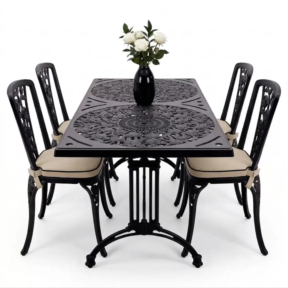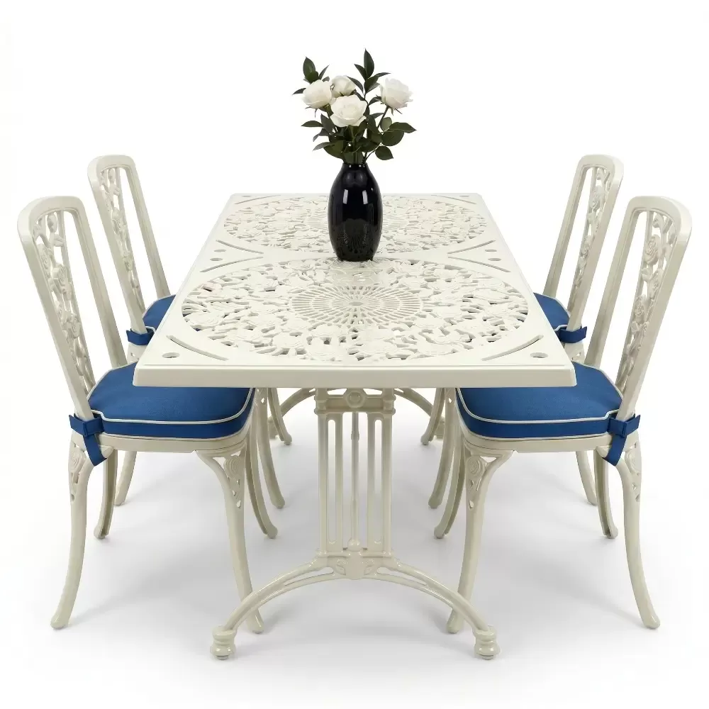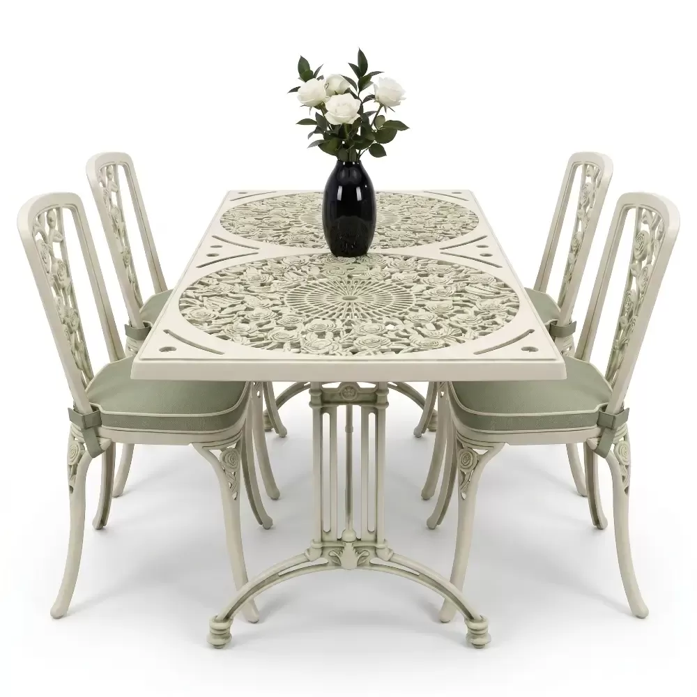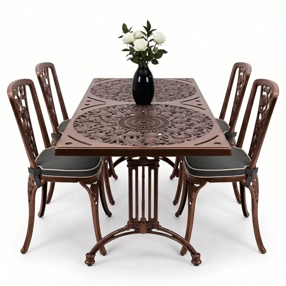 Alüminyum döküm materyalin doğal paslanmazlık özelliği sayesinde bu takım; havuz kenarlarındaki yoğun nemden sahil şeridindeki tuzlu havaya kadar her türlü zorlu şarta tam uyum sağlar. Cafe, otel ve restoran gibi ticari işletmelerin yanı sıra evlerin bahçe ve balkon bölümleri için ideal bir tercihtir. Alüminyumun hafifliği yer değiştirme sırasında kolaylık sağlarken, döküm yapısı rüzgara karşı dirençlidir. Bakım gereksinimi minimumdur; sadece su ve yumuşak bir bez ile silinmesi, mobilyanın ilk günkü ışıltılı görünümünü koruması için yeterlidir. Hijyenik yüzey yapısı kir tutmaz ve dış ortamın yıpratıcı etkilerine karşı yüksek direnç gösterir.