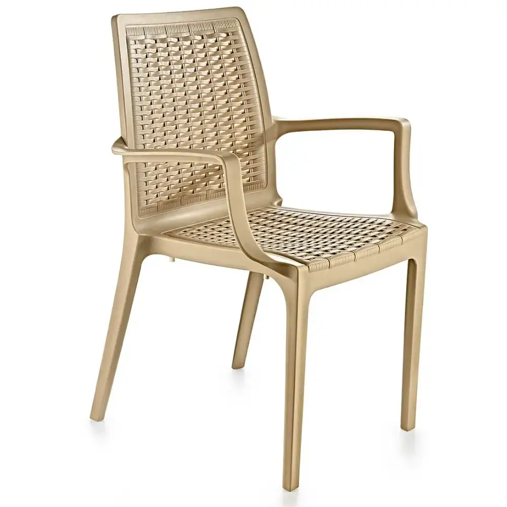 Kollu Plastik Sandalye 2524 - Krem Rengi ve Rattan Dokusuyla Şık ve Konforlu