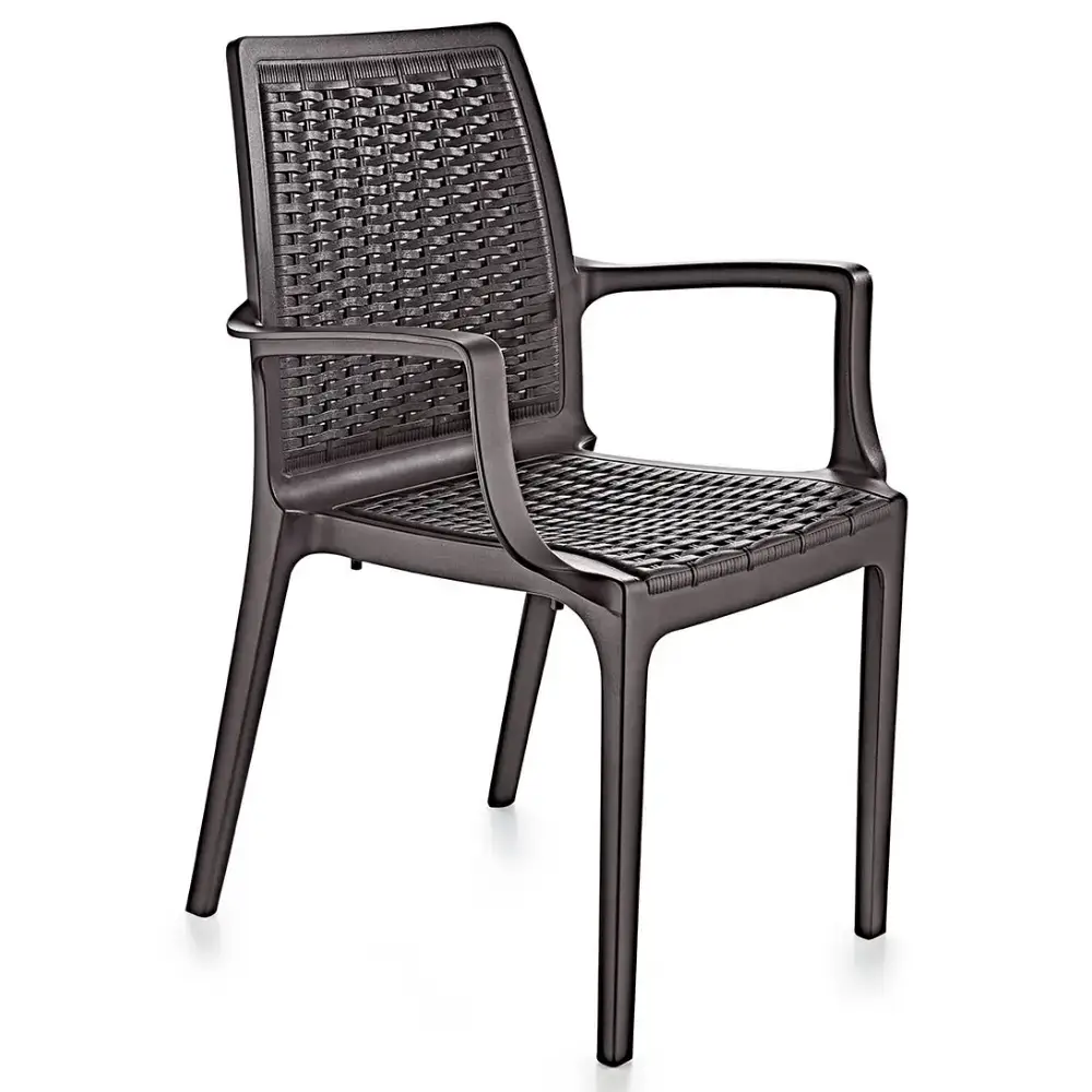 Kollu Plastik Sandalye 2524 - Koyu Kahve Rengi ve Rattan Dokusuyla Doğal Konfor