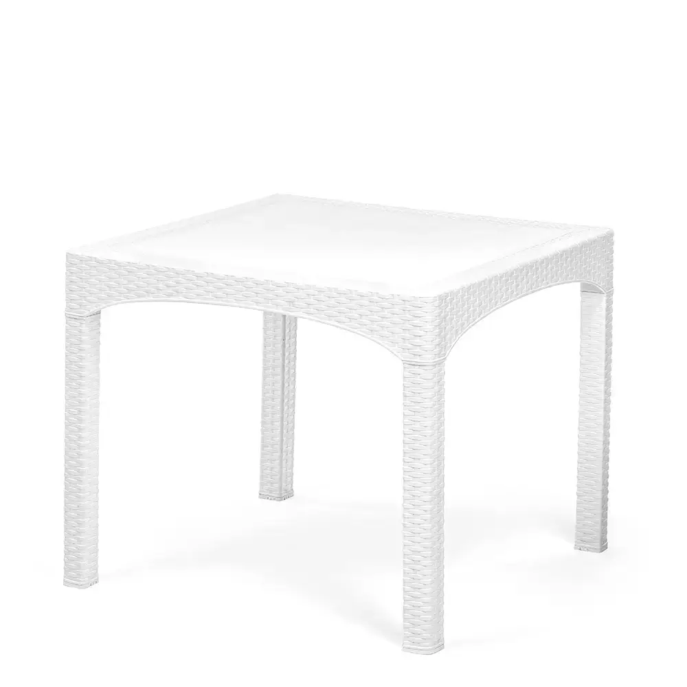 Kare Plastik Masa 2574 - Beyaz Rengi ve Rattan Dokusuyla Aydınlık Zarafet