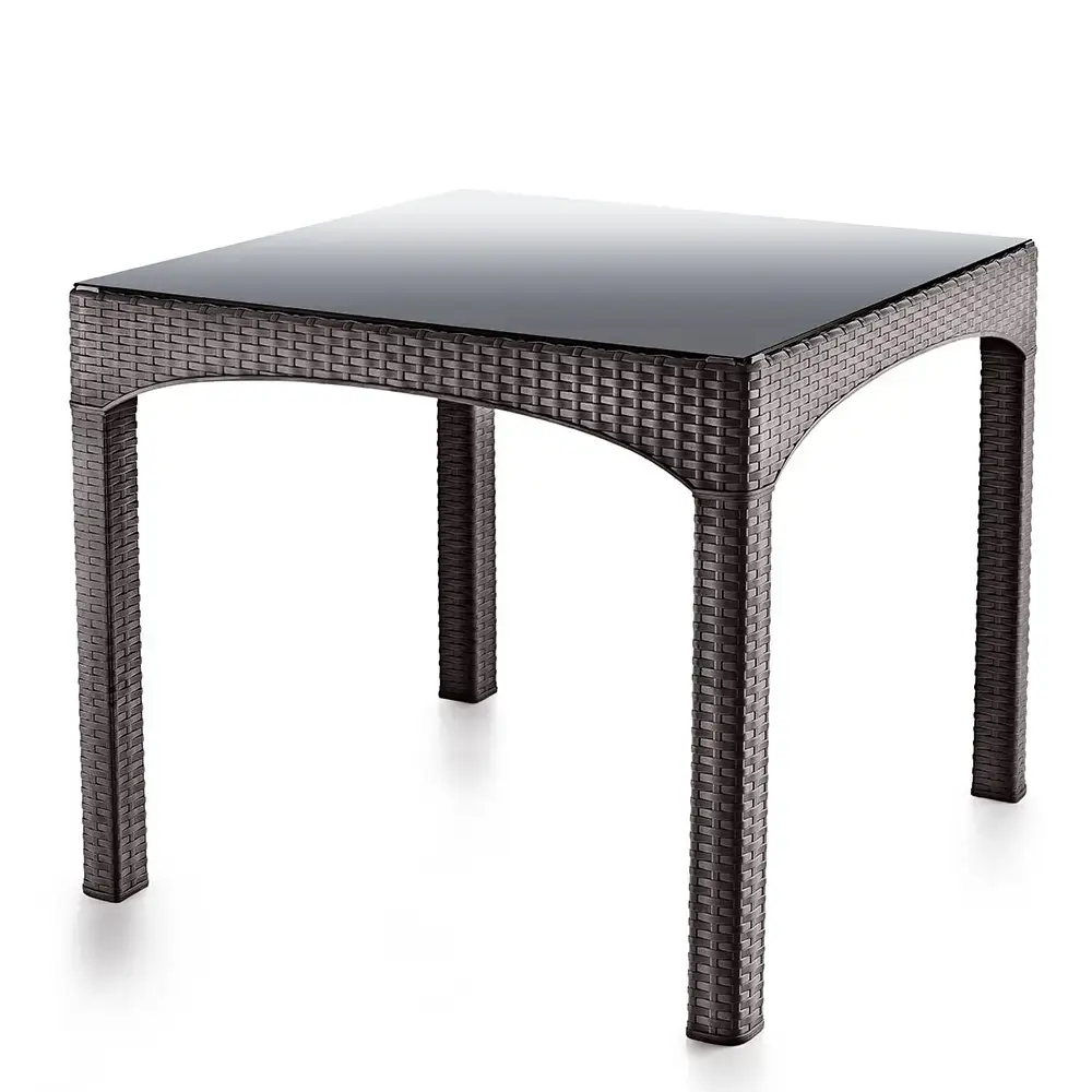 Plastik Kare Rattan Masa 2576 - Kahverengi Rengiyle Doğal Şıklık ve Camlı Konfor