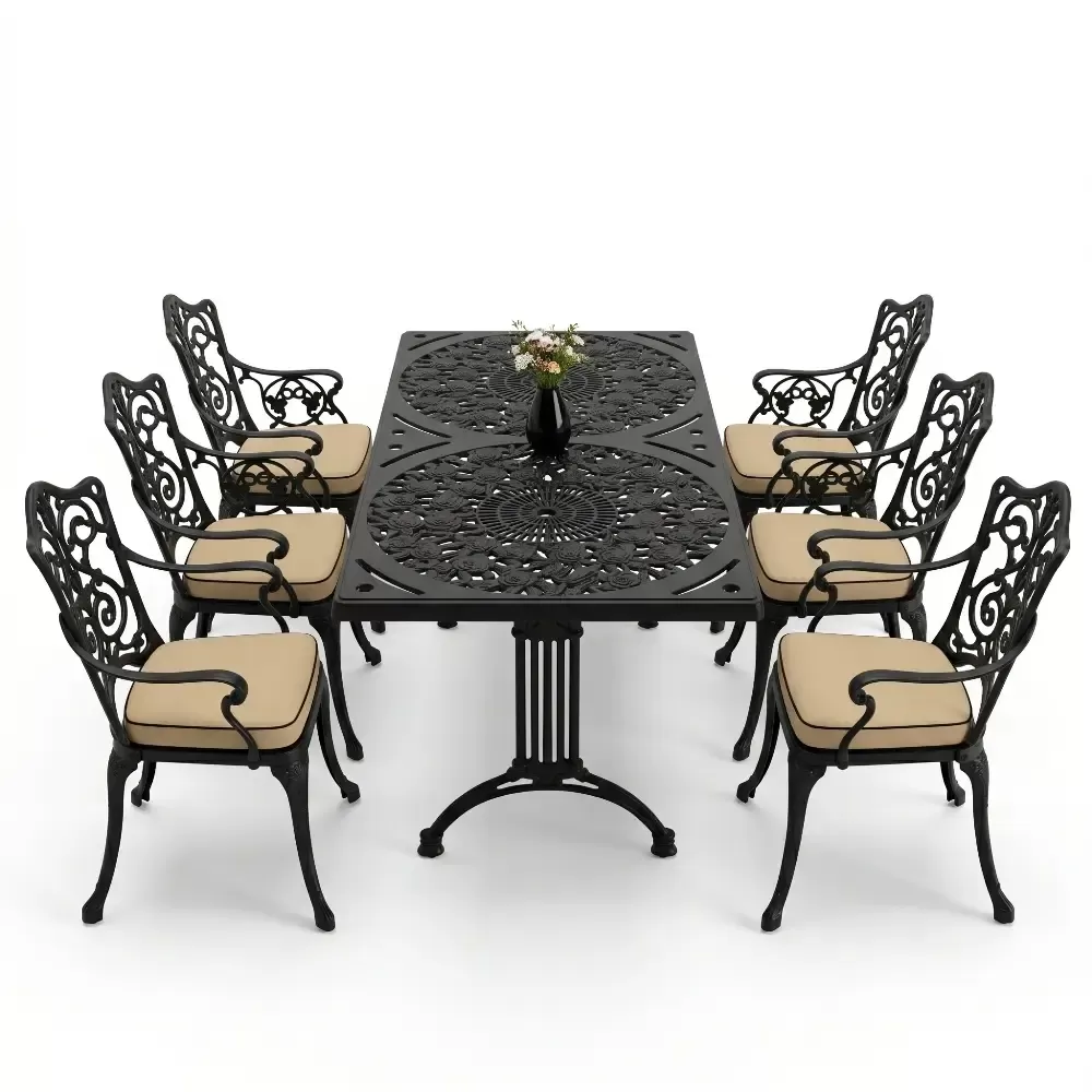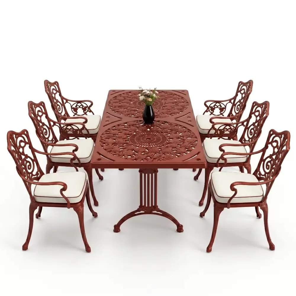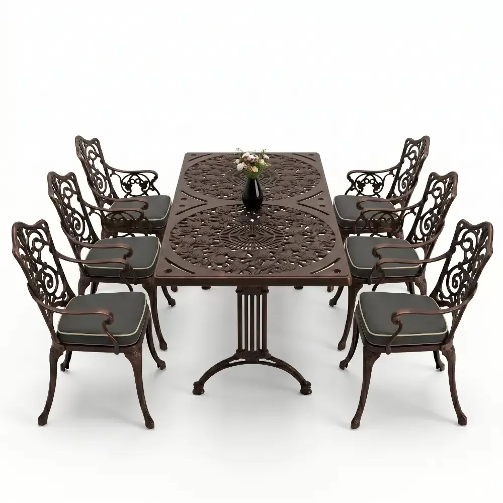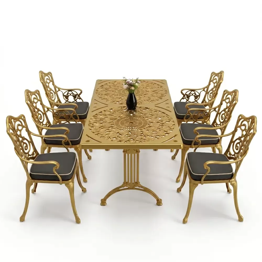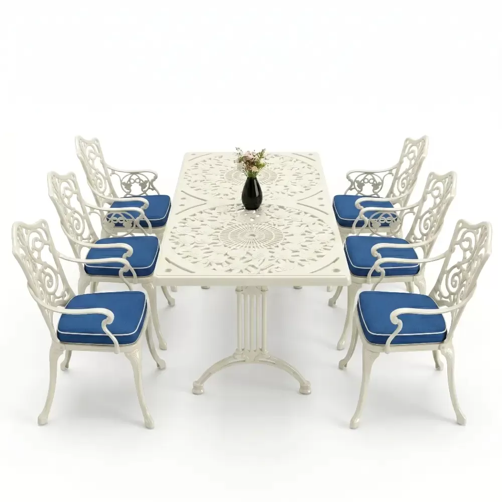 Akbrella tarafindan titizlikle uretilen 101 MHS model ferforje tip aluminyum dokum masa takimi, bahce ve teras dekorasyonunuza sofistike bir hava katmak icin tasarlandi. Klasik motiflerin modern döküm teknikleriyle bulustugu bu set, hafif yapisina ragmen yuksek dayaniklilik sergileyerek dis mekan mobilyasinda beklediginiz tum ihtiyaclari karsilar.