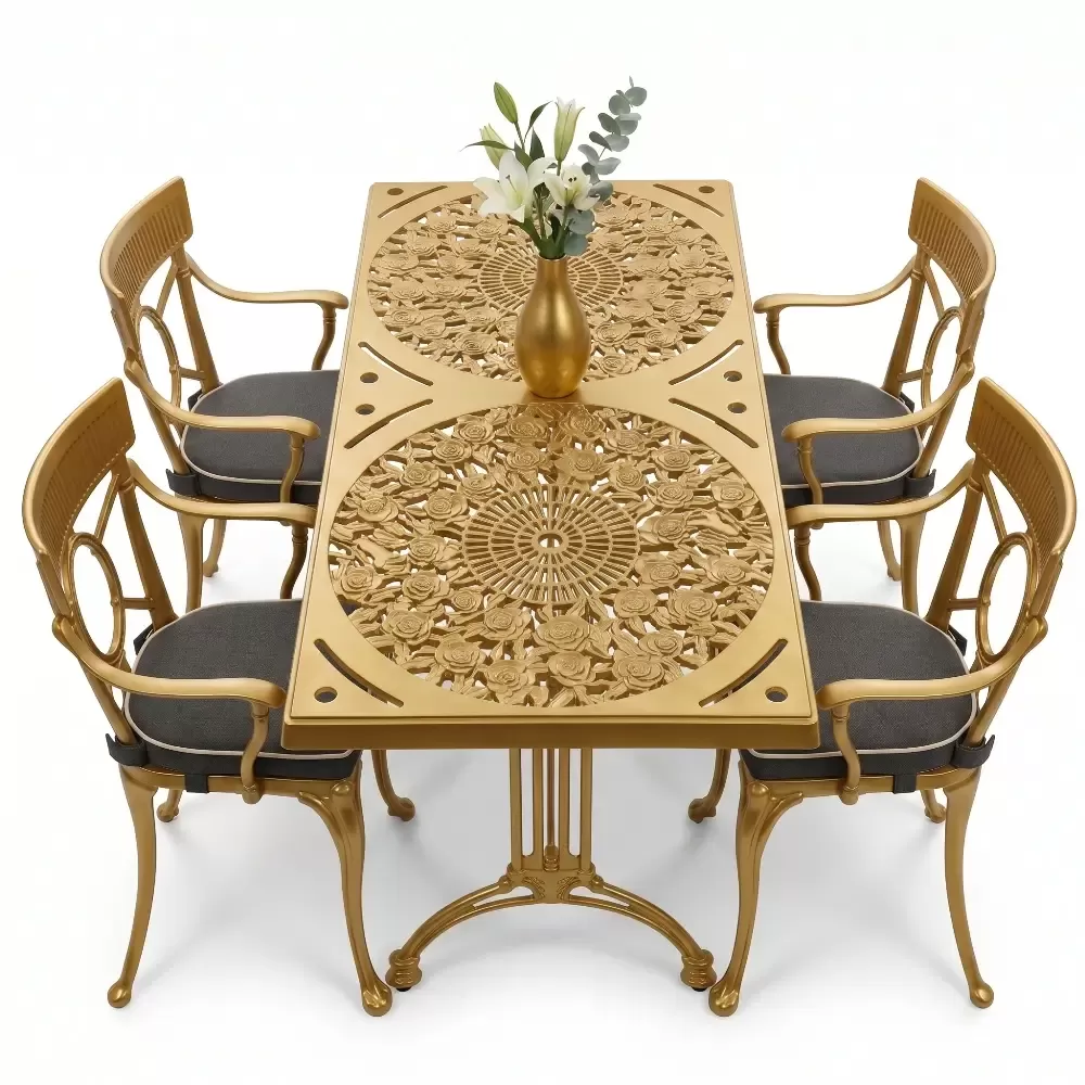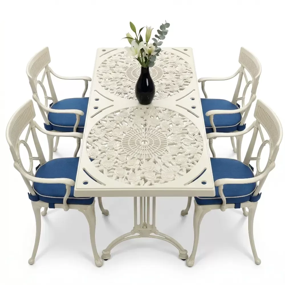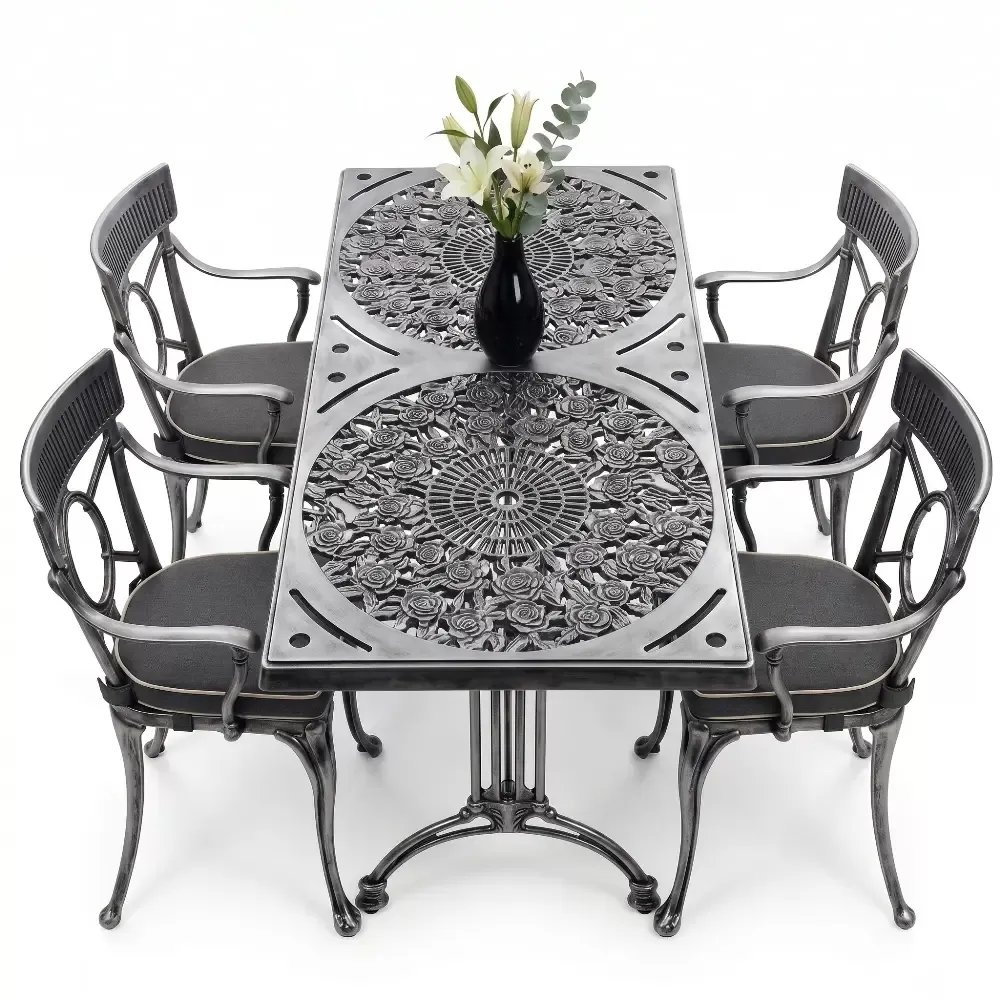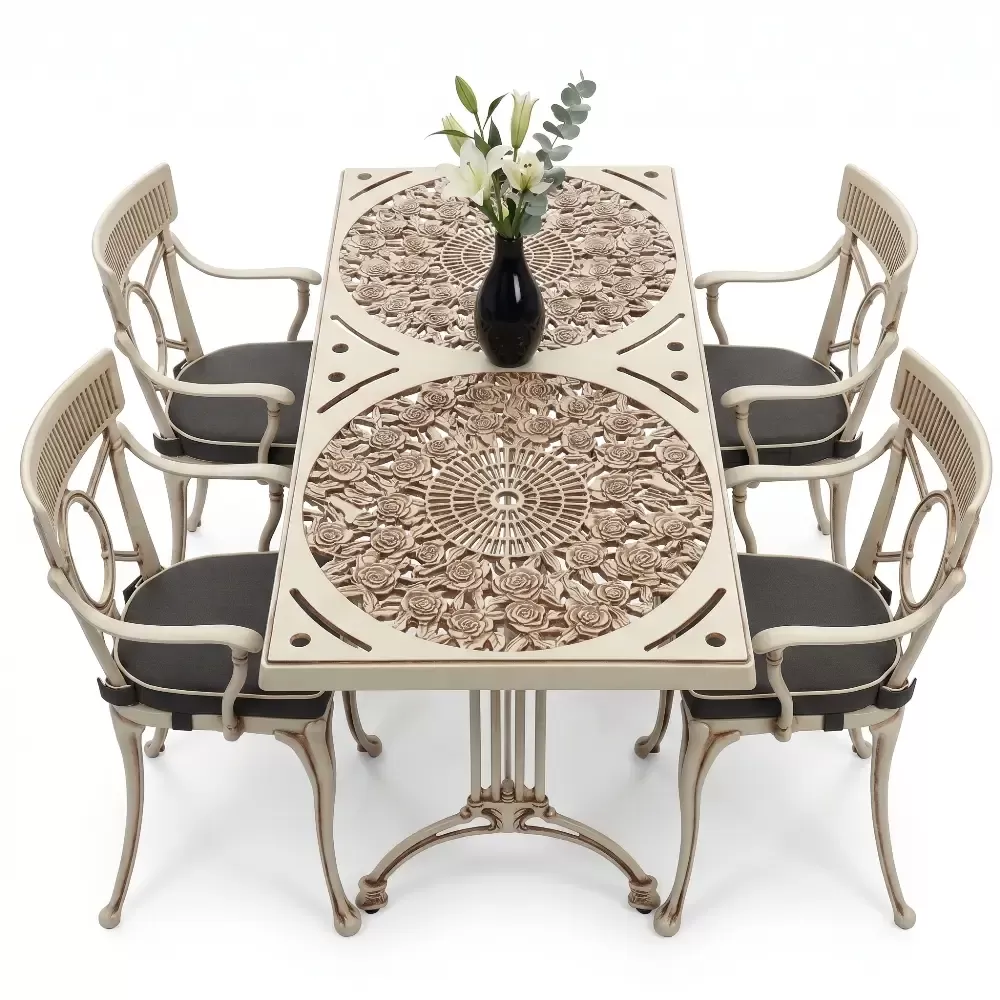 Alüminyum döküm materyalin doğal paslanmazlık özelliği sayesinde bu takım; havuz kenarlarındaki yoğun nemden sahil şeridindeki tuzlu havaya kadar her türlü zorlu şarta tam uyum sağlar. Cafe, otel ve restoran gibi ticari işletmelerin yanı sıra evlerin bahçe ve balkon bölümleri için ideal bir tercihtir. Alüminyumun hafifliği yer değiştirme sırasında kolaylık sağlarken, döküm yapısı rüzgara karşı dirençlidir. Bakım gereksinimi minimumdur; sadece su ve yumuşak bir bez ile silinmesi, mobilyanın ilk günkü ışıltılı görünümünü koruması için yeterlidir. Hijyenik yüzey yapısı kir tutmaz ve dış ortamın yıpratıcı etkilerine karşı yüksek direnç gösterir.