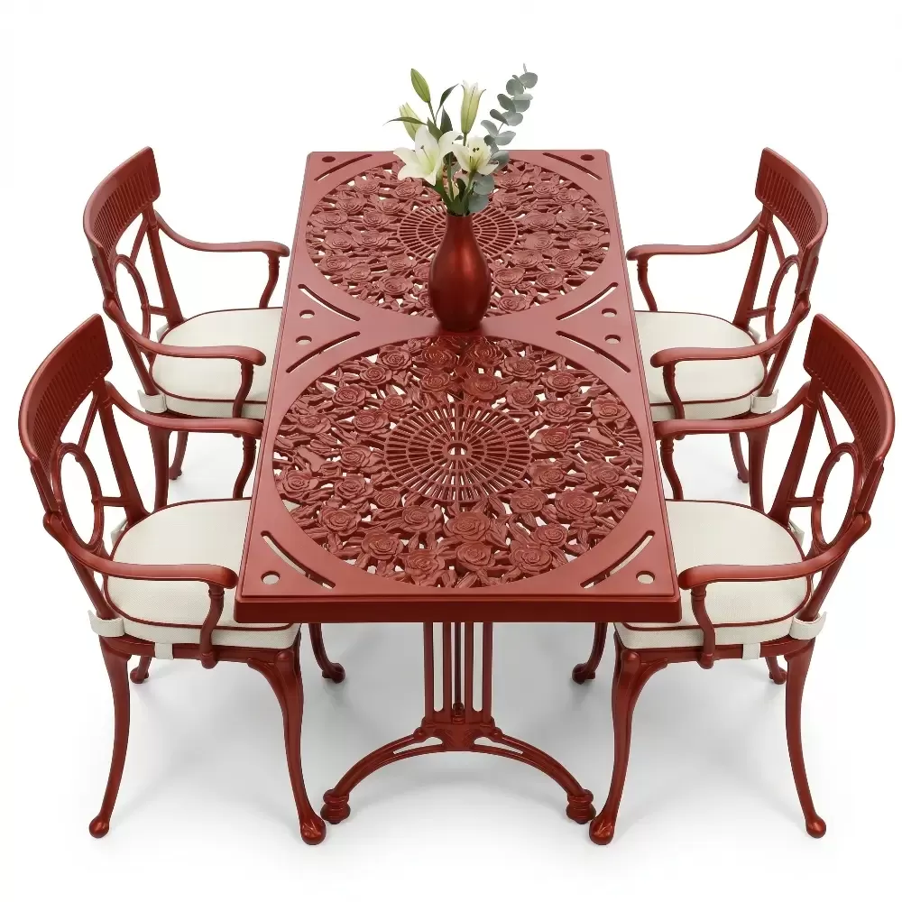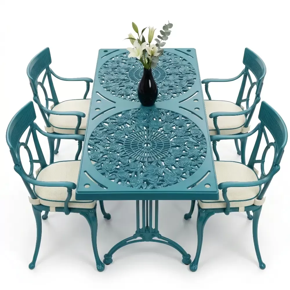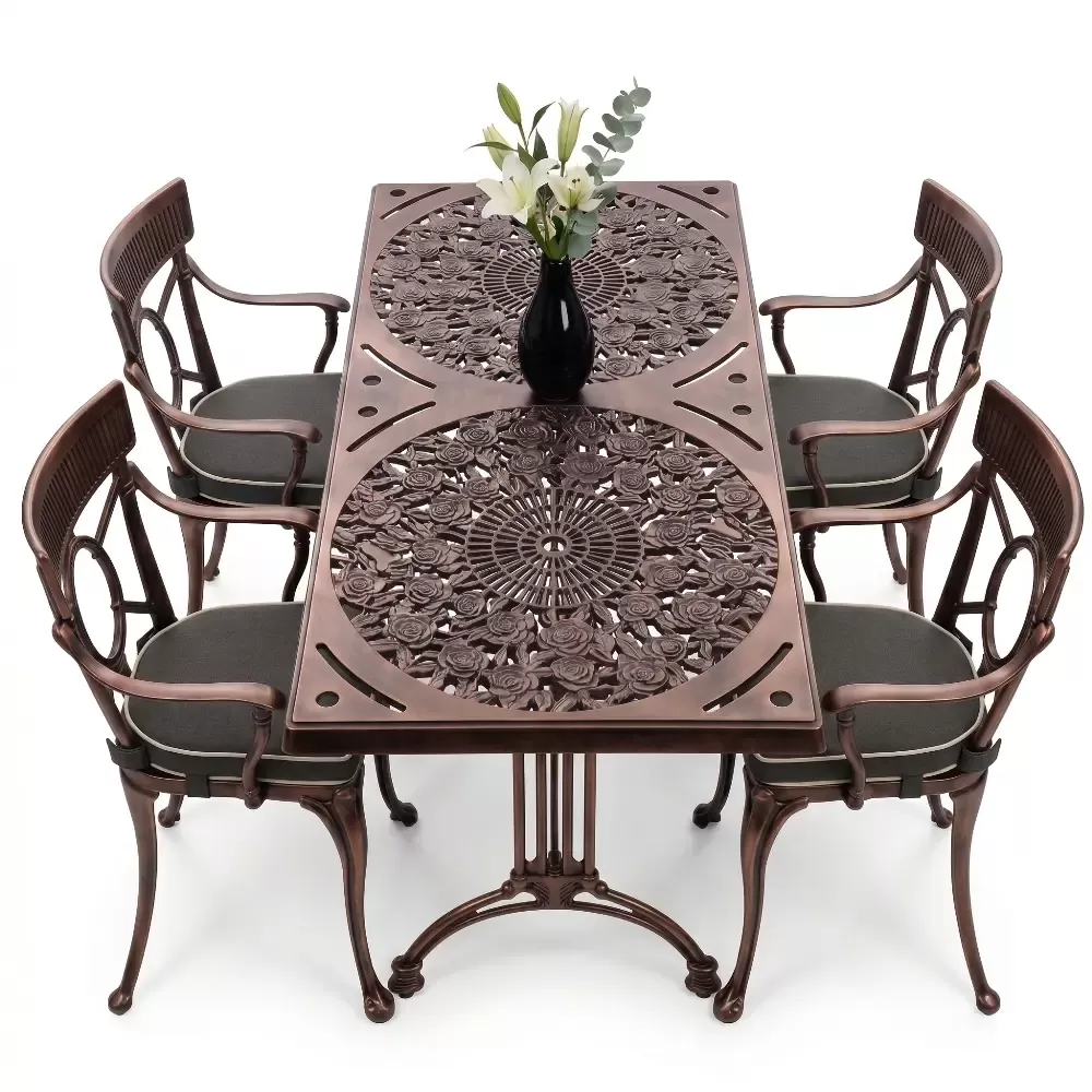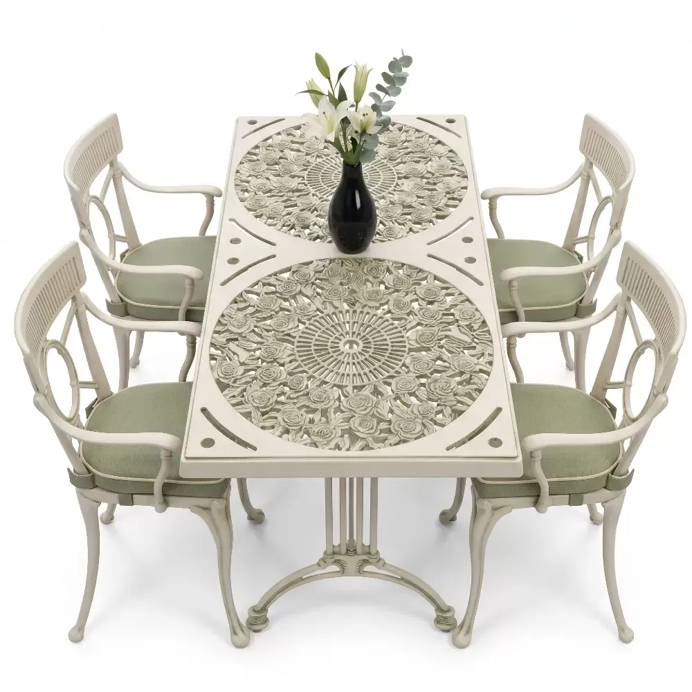 Alüminyum döküm materyalin doğal paslanmazlık özelliği sayesinde bu takım; havuz kenarlarındaki yoğun nemden sahil şeridindeki tuzlu havaya kadar her türlü zorlu şarta tam uyum sağlar. Cafe, otel ve restoran gibi ticari işletmelerin yanı sıra evlerin bahçe ve balkon bölümleri için ideal bir tercihtir. Alüminyumun hafifliği yer değiştirme sırasında kolaylık sağlarken, döküm yapısı rüzgara karşı dirençlidir. Bakım gereksinimi minimumdur; sadece su ve yumuşak bir bez ile silinmesi, mobilyanın ilk günkü ışıltılı görünümünü koruması için yeterlidir. Hijyenik yüzey yapısı kir tutmaz ve dış ortamın yıpratıcı etkilerine karşı yüksek direnç gösterir.