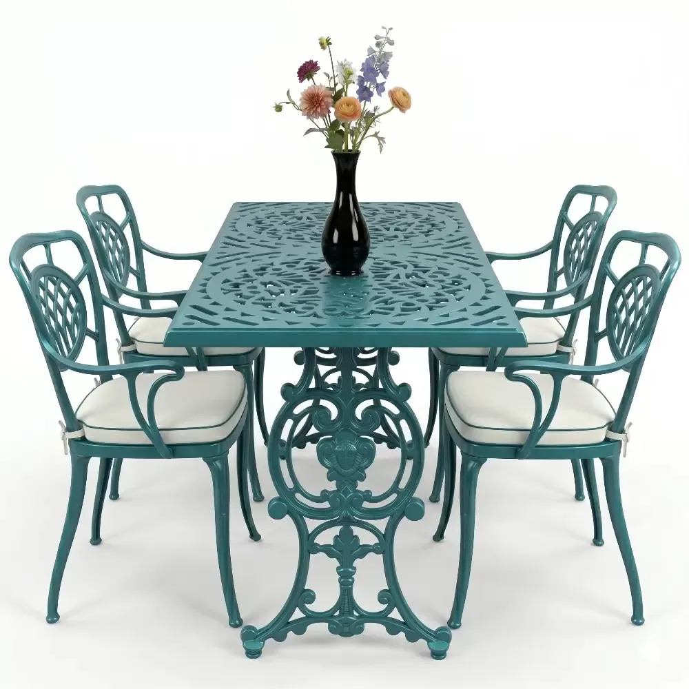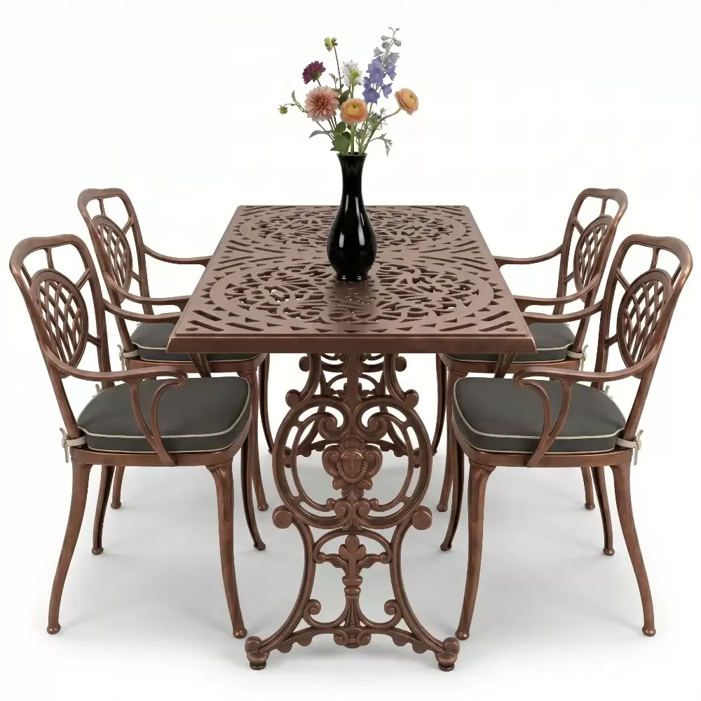 Alüminyum döküm materyalin doğal paslanmazlık özelliği sayesinde bu takım; havuz kenarlarındaki yoğun nemden sahil şeridindeki tuzlu havaya kadar her türlü zorlu şarta tam uyum sağlar. Cafe, otel ve restoran gibi ticari işletmelerin yanı sıra evlerin bahçe ve balkon bölümleri için ideal bir tercihtir. Alüminyumun hafifliği yer değiştirme sırasında kolaylık sağlarken, döküm yapısı rüzgara karşı dirençlidir. Bakım gereksinimi minimumdur; sadece su ve yumuşak bir bez ile silinmesi, mobilyanın ilk günkü ışıltılı görünümünü koruması için yeterlidir. Hijyenik yüzey yapısı kir tutmaz ve dış ortamın yıpratıcı etkilerine karşı yüksek direnç gösterir.