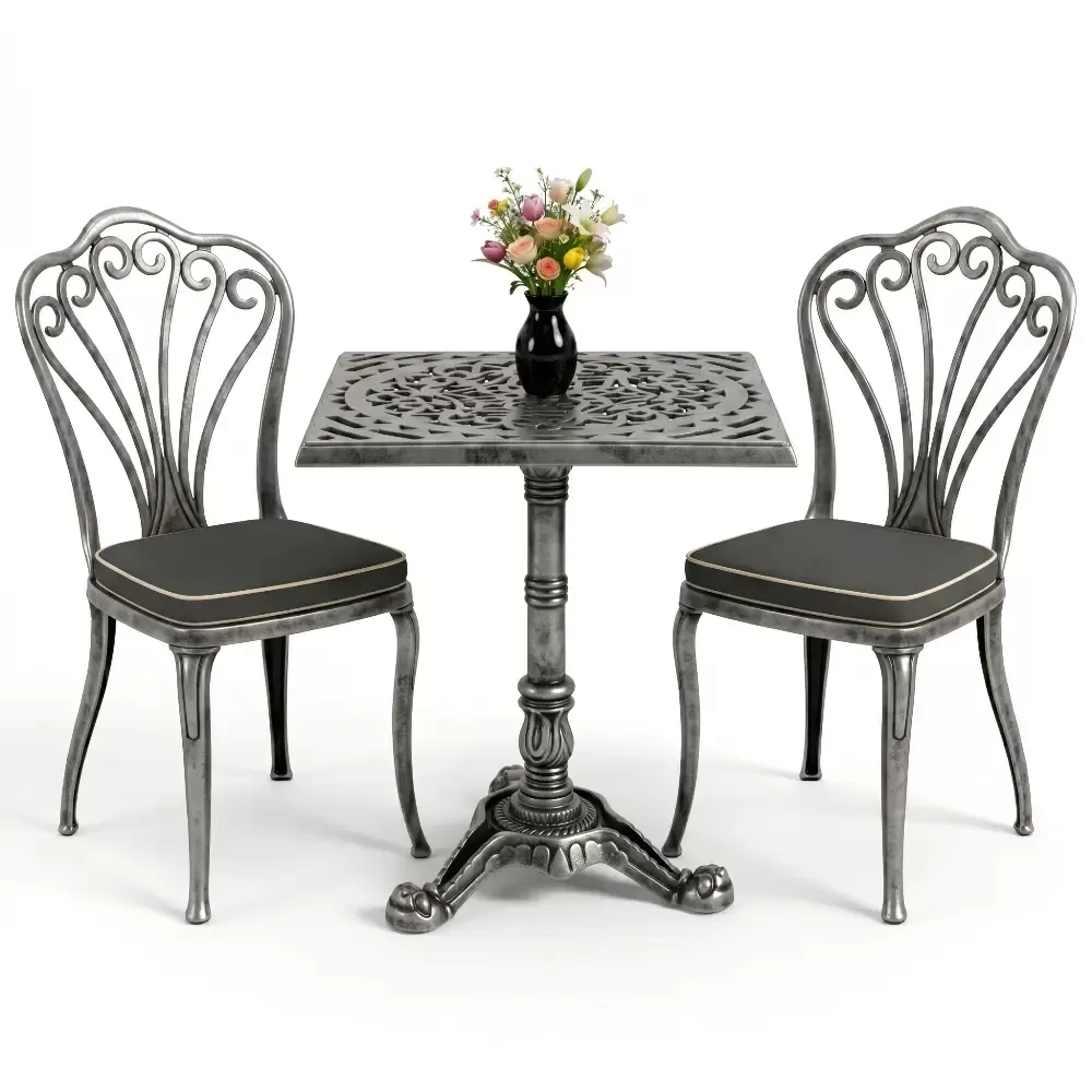 1 Adet Kare Masa ve 2 Adet Döküm Sandalye |