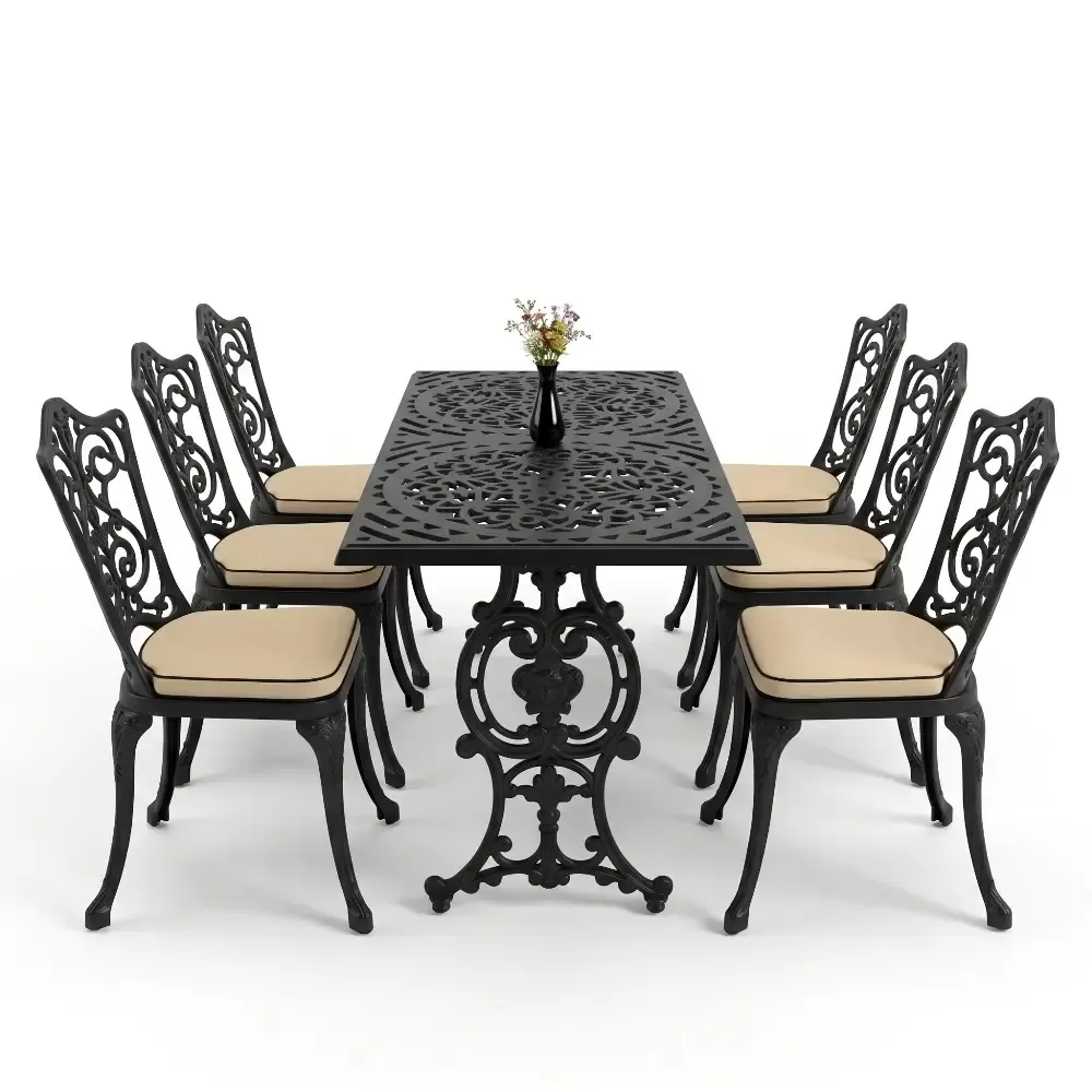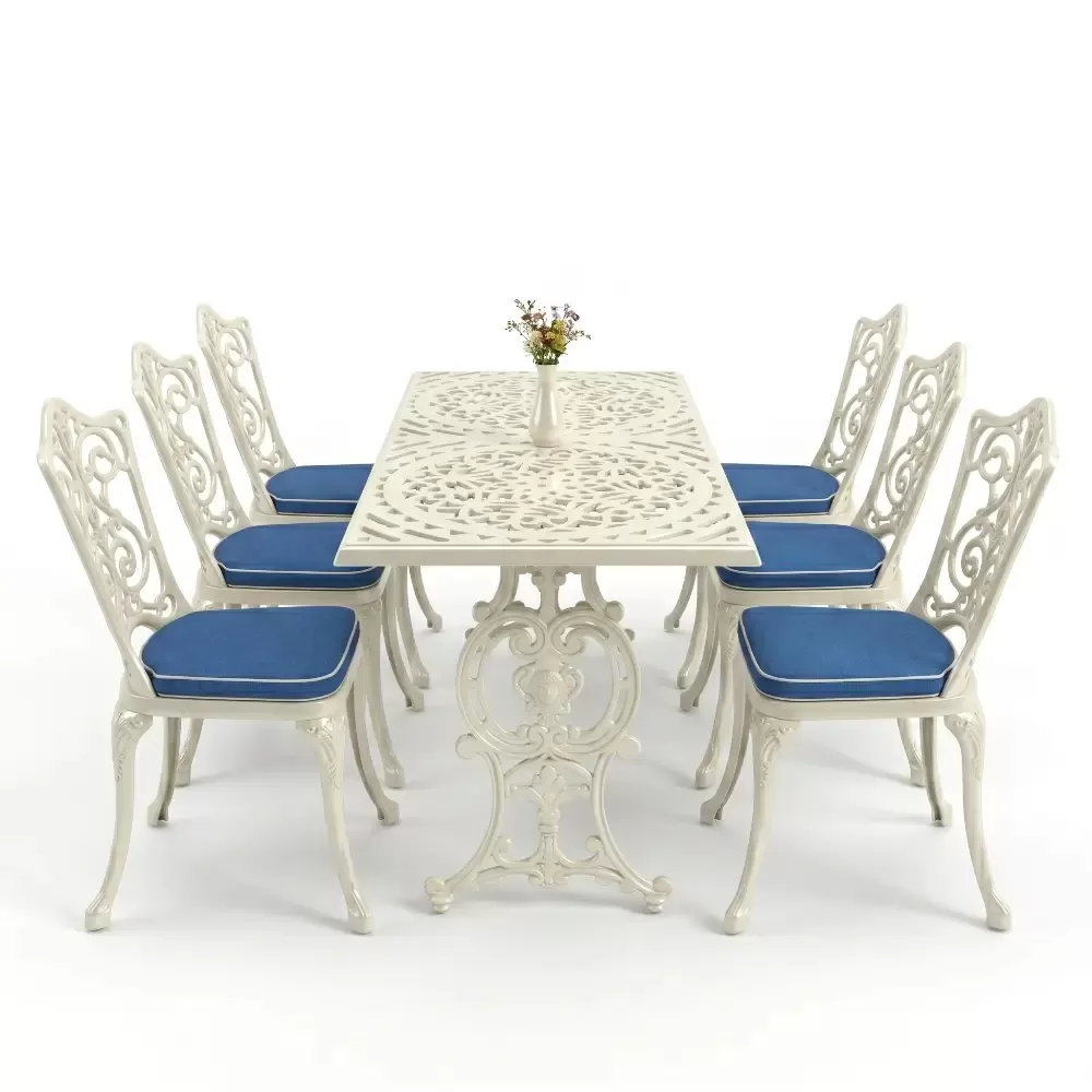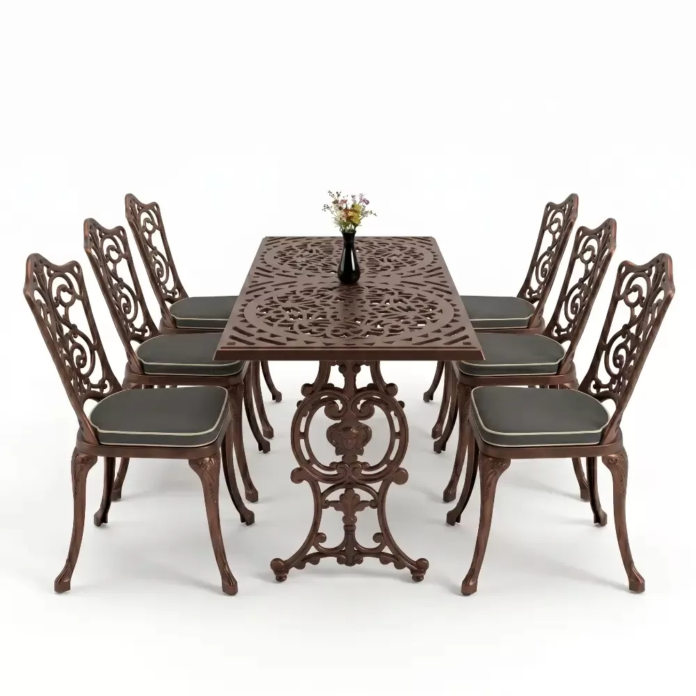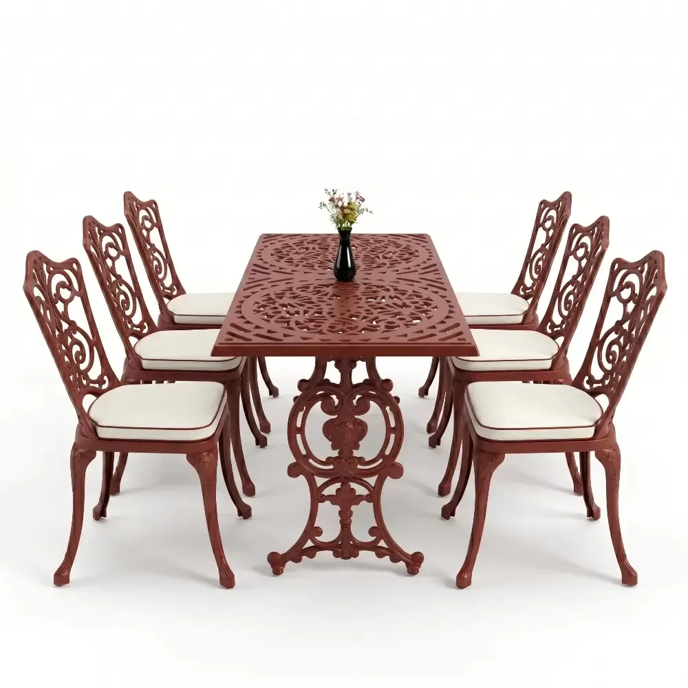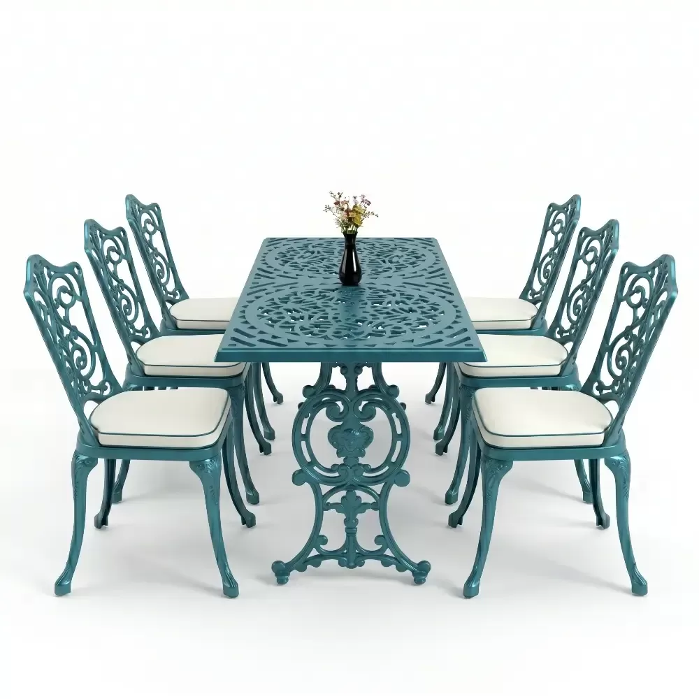 Yaşam alanlarınızın dış dünyaya açılan kapıları olan bahçe, teras ve balkonlarınız için tasarlanan 106 MHS model yemek takımı, estetik ve konforu bir arada sunar. Ferforje sanatının ince işçiliğini alüminyum dökümün hafifliği ve paslanmaz yapısıyla buluşturan bu set, altı kişilik kapasitesiyle geniş aile sofralarına ve dost meclislerine ev sahipliği yapmak için üretilmiştir. Mimari dokunuşlarla hazırlanan tasarımı, mekanınıza klasik bir asalet katarken modern kullanım kolaylıklarını da beraberinde getirir.