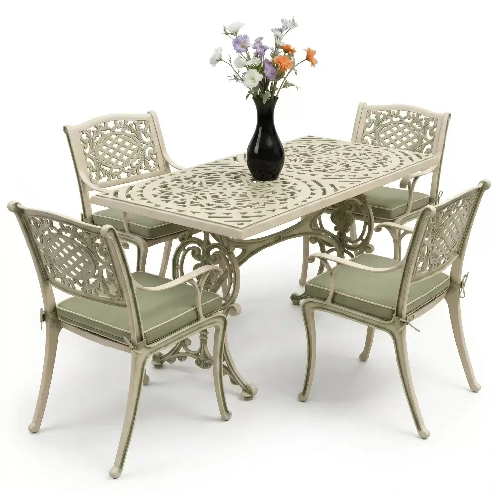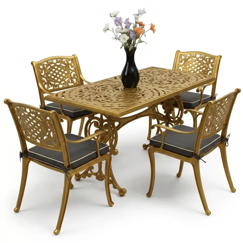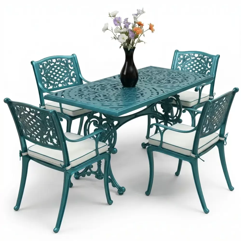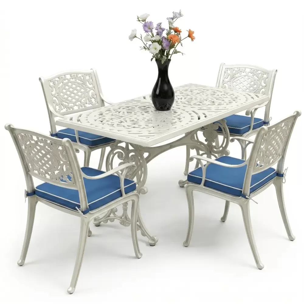 Alüminyum döküm materyalin doğal paslanmazlık özelliği sayesinde bu takım; havuz kenarları, sahil şeridi mekanları, geniş balkonlar ve restoran terasları için vazgeçilmezdir. Rüzgarın deviremeyeceği kadar stabil, yerini değiştirmenize imkan tanıyacak kadar ergonomik bir yapıya sahiptir. Bakım gereksinimi oldukça düşüktür; elektrostatik fırın boyası sayesinde sadece su ve yumuşak bir bez ile silinmesi, mobilyanızın fabrikadan çıktığı andaki ışıltısını koruması için yeterlidir. Hijyenik yüzey yapısı kir tutmaz ve dış ortamın yıpratıcı etkilerine karşı direnç gösterir.