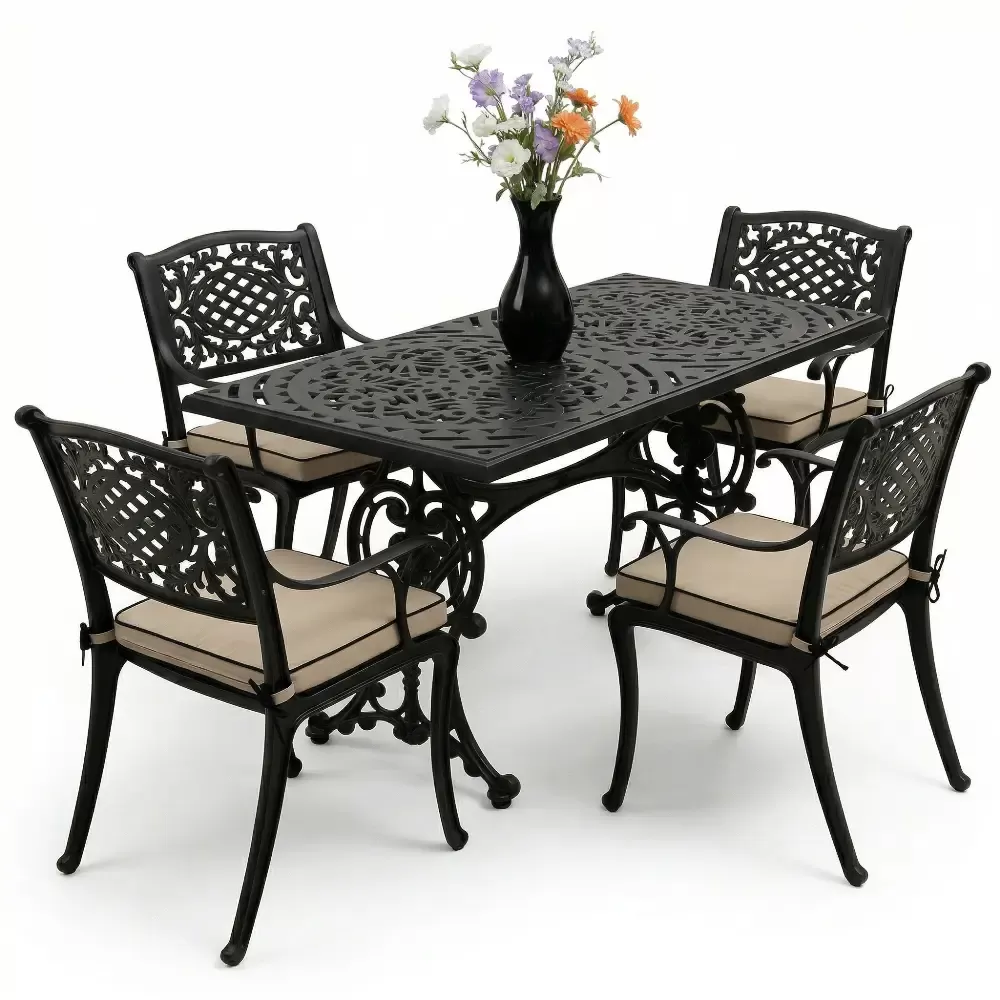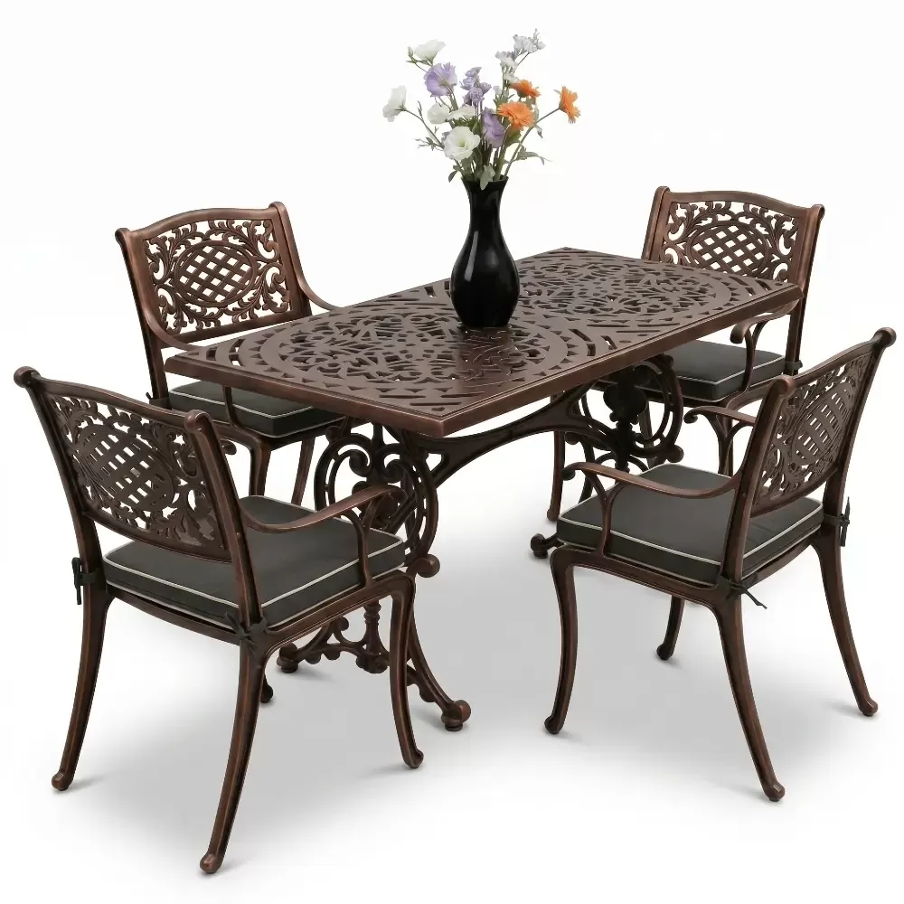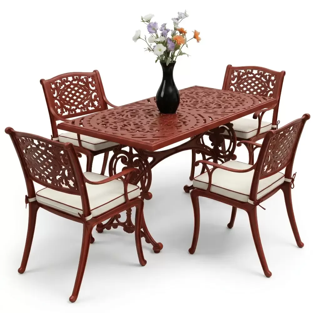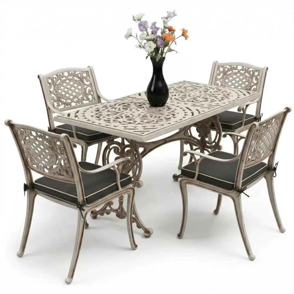 Alüminyum döküm materyalin doğal paslanmazlık özelliği sayesinde bu takım; havuz kenarları, sahil şeridi mekanları, geniş balkonlar ve restoran terasları için vazgeçilmezdir. Rüzgarın deviremeyeceği kadar stabil, yerini değiştirmenize imkan tanıyacak kadar ergonomik bir yapıya sahiptir. Bakım gereksinimi oldukça düşüktür; elektrostatik fırın boyası sayesinde sadece su ve yumuşak bir bez ile silinmesi, mobilyanızın fabrikadan çıktığı andaki ışıltısını koruması için yeterlidir. Hijyenik yüzey yapısı kir tutmaz ve dış ortamın yıpratıcı etkilerine karşı direnç gösterir.