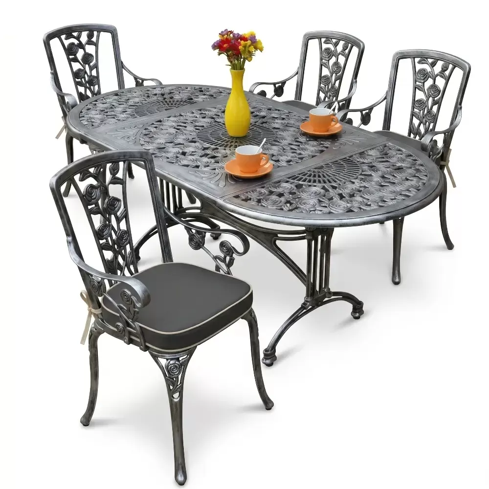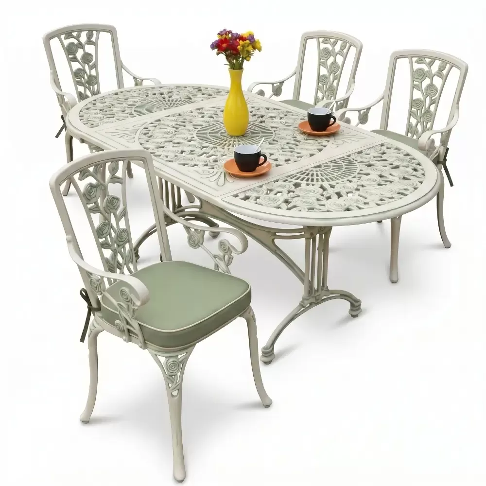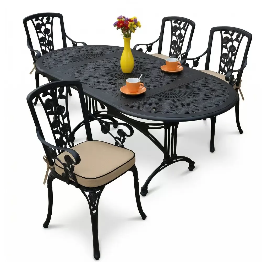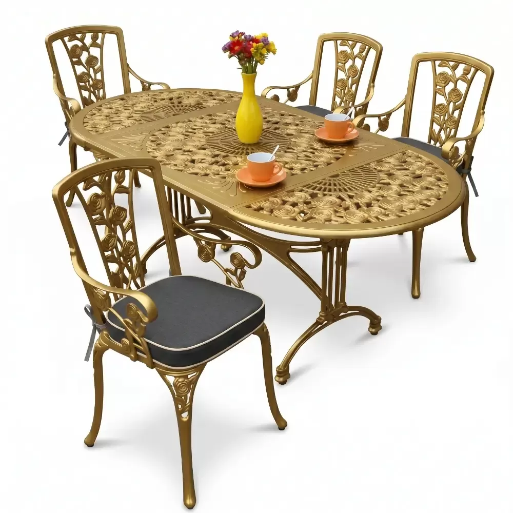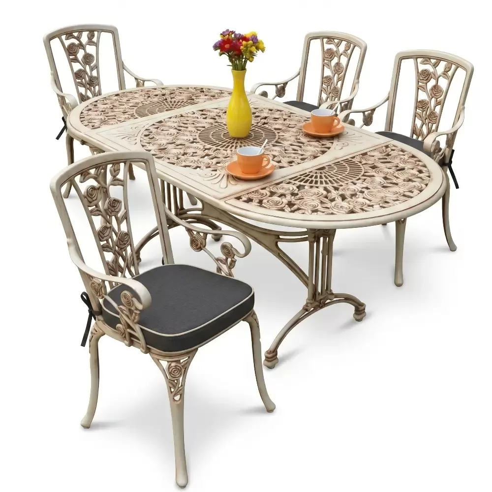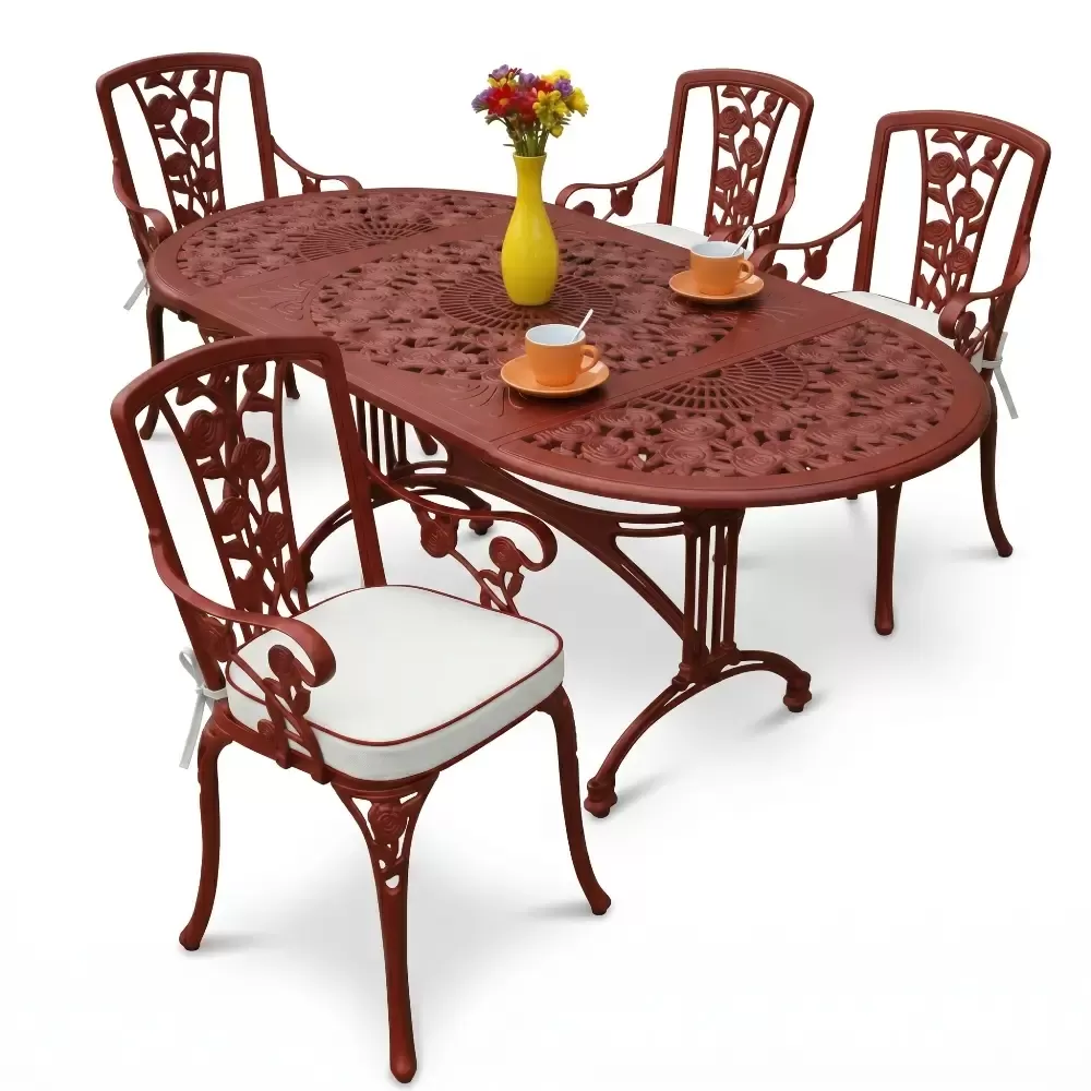 Açık havada geçirilen vakitleri daha sofistike bir seviyeye taşıyan 72 MHS alüminyum döküm masa takımı, oval formun birleştirici gücünü geleneksel ferforje sanatının ince işçiliğiyle harmanlıyor. Akbrella uzmanlığıyla hayata geçirilen bu dört kişilik özel set, keskin hatlardan arındırılmış oval yapısıyla mekanınızda akıcı bir görsel estetik oluşturur. Döküm metalin sarsılmaz gücünü asil bir duruşla sunan bu koleksiyon, bahçenizden balkonunuza kadar her noktada fark yaratan bir mobilya tasarımıdır.