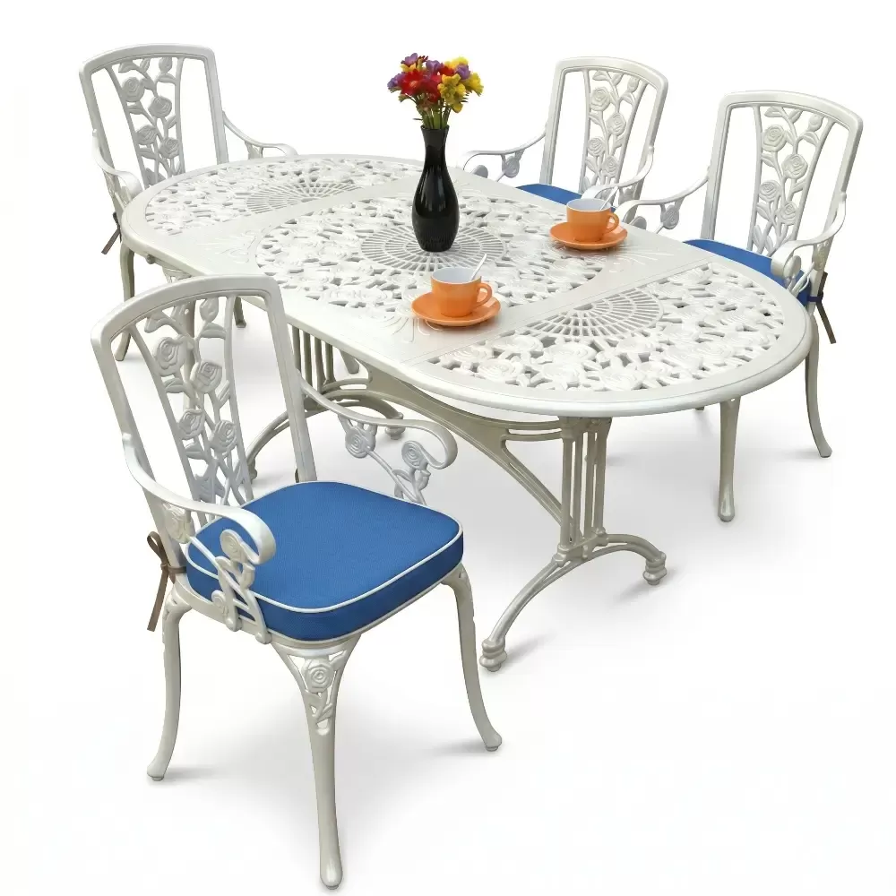 Alüminyum döküm materyalin doğal paslanmazlık özelliği sayesinde bu takım; havuz kenarları, yüksek neme sahip sahil şeridi mekanları, balkonlar ve restoran terasları için vazgeçilmezdir. Rüzgarın deviremeyeceği kadar stabil, yerini değiştirmenize imkan tanıyacak kadar ergonomik bir yapıya sahiptir. Bakım gereksinimi oldukça düşüktür; elektrostatik fırın boyası sayesinde sadece su ve yumuşak bir bez ile silinmesi, mobilyanızın fabrikadan çıktığı andaki ışıltısını koruması için yeterlidir. Hijyenik yüzey yapısı kir tutmaz ve dış ortamın yıpratıcı etkilerine karşı direnç gösterir.