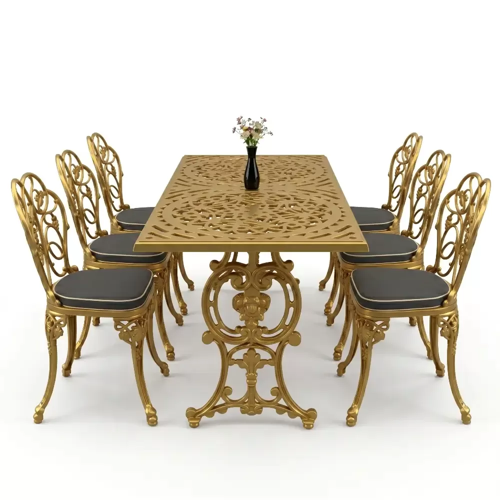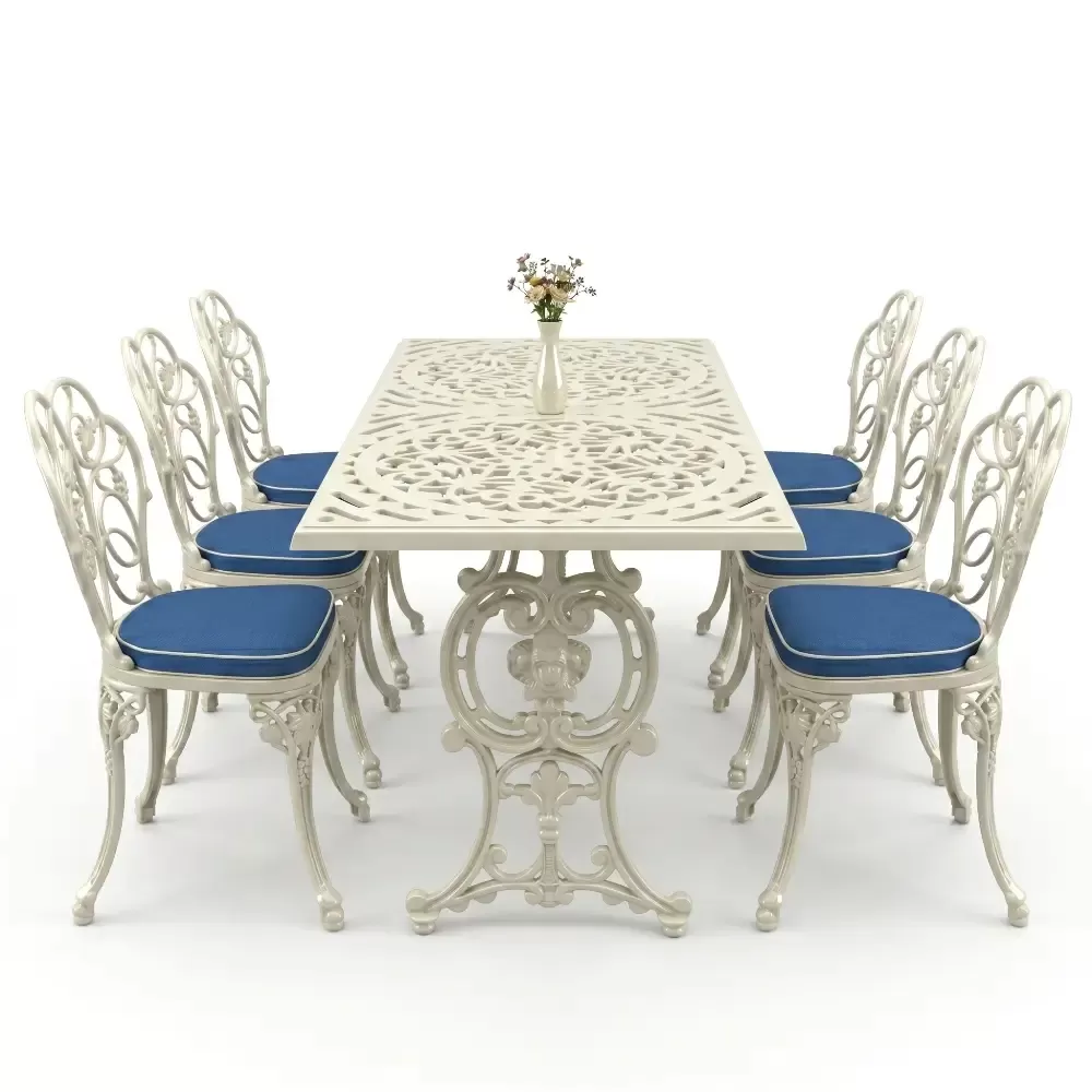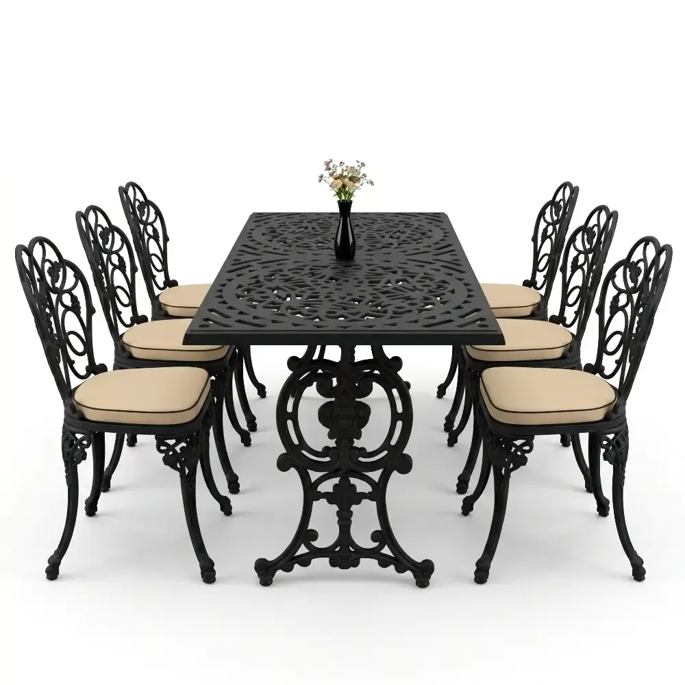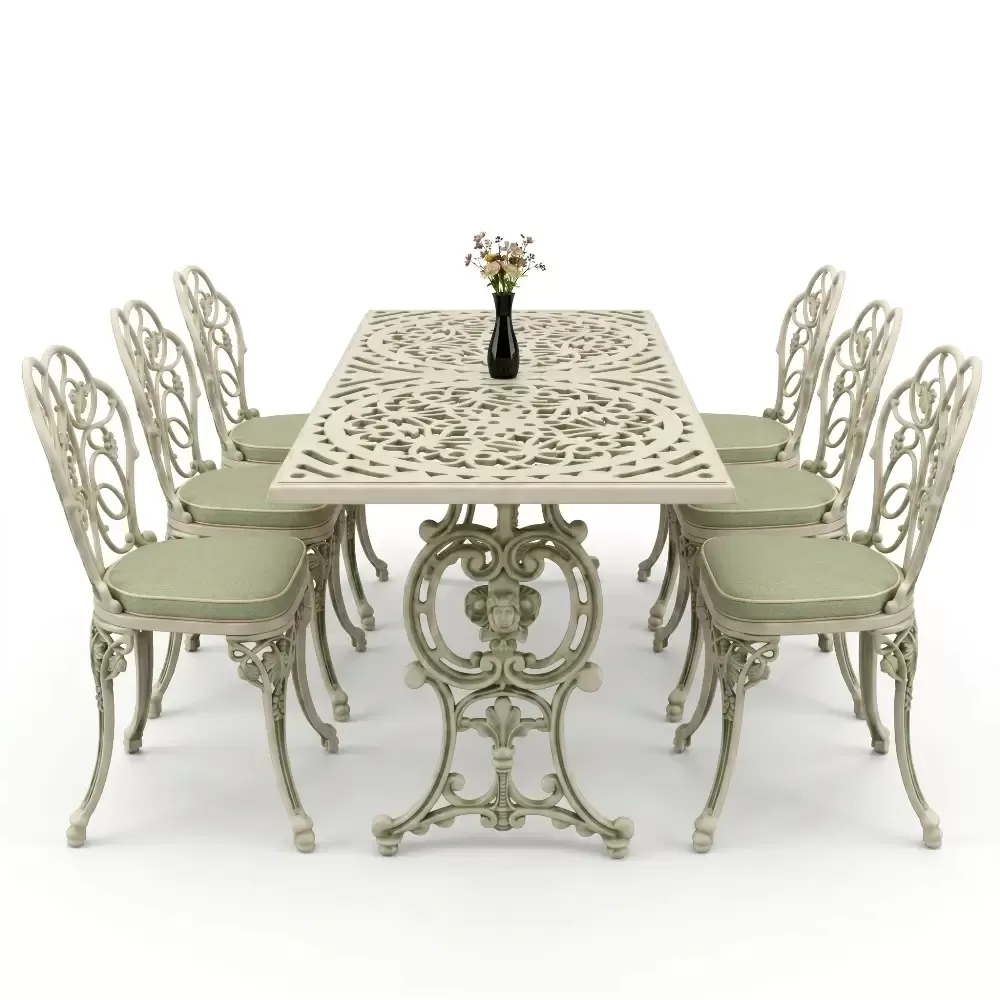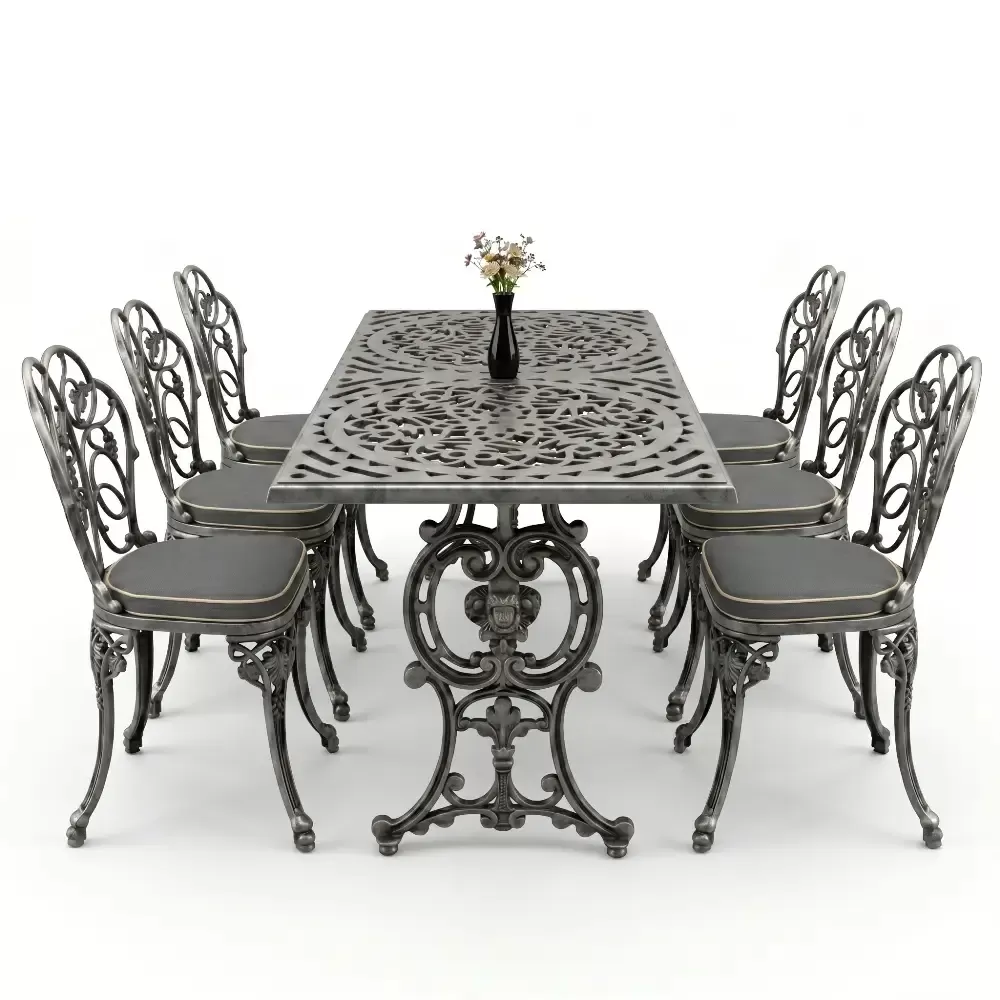 Akbrella dış mekan koleksiyonunun seçkin bir parçası olan 108 MHS modeli, bahçenizde veya terasınızda klasik ferforje estetiğini yaşatırken, modern malzemenin sunduğu hafiflik ve dayanıklılık avantajlarını kapınıza getiriyor. Altı kişilik geniş oturma kapasitesiyle tasarlanan bu takım, dikdörtgen formdaki masası ve ergonomik sandalyeleriyle uzun süreli yemek keyifleri için optimize edilmiştir. Her bir ayrıntısı özenle işlenen döküm motifleri, mekanınıza sanatsal bir derinlik kazandırır.