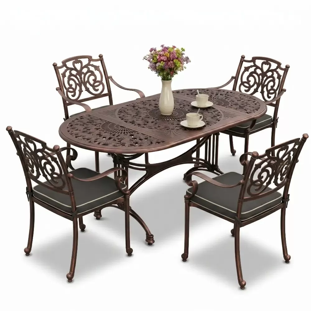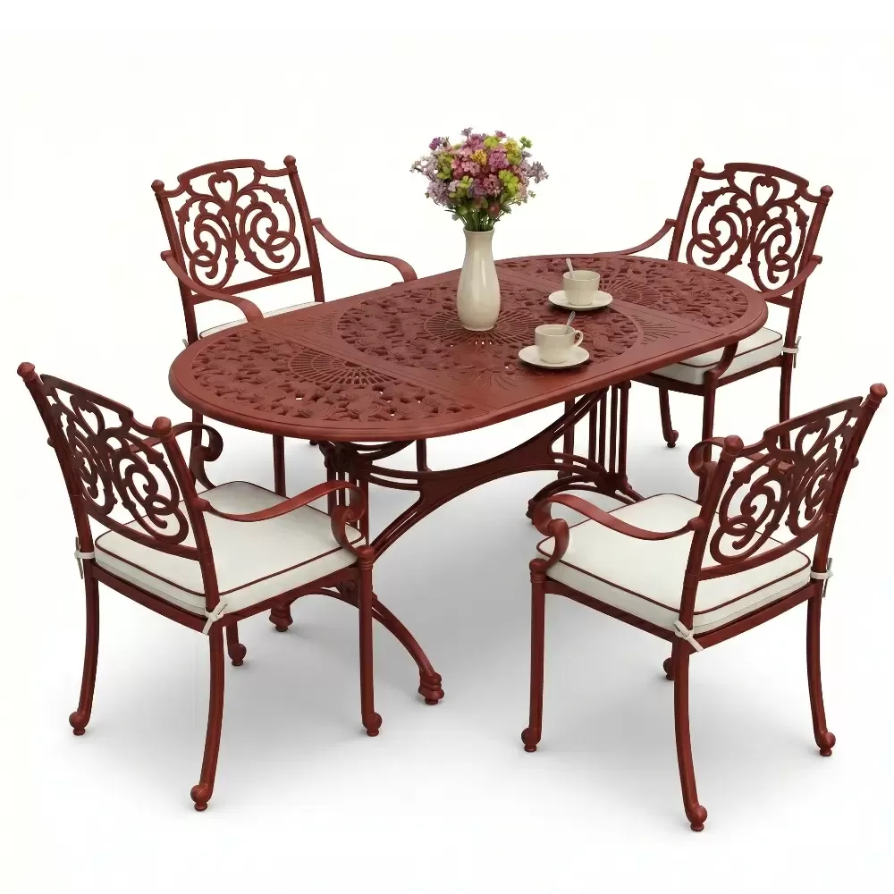 Açık havada geçirilen vakitleri daha prestijli ve konforlu bir seviyeye taşıyan 75 MHS alüminyum döküm masa takımı, ferforje sanatının asil hatlarını oval formun birleştirici gücüyle buluşturuyor. Akbrella uzmanlığıyla hayata geçirilen bu dört kişilik özel set, keskin hatlardan arındırılmış oval yapısıyla mekanınızda yumuşak bir görsel geçiş oluştururken, döküm metalin sarsılmaz gücünü zarafetle harmanlıyor. Bahçenizden terasınıza kadar her noktada fark yaratan bu tasarım, prestijli bir oturma alanı kurgulamanız için fabrikamızda titizlikle şekillendirilmiştir.
