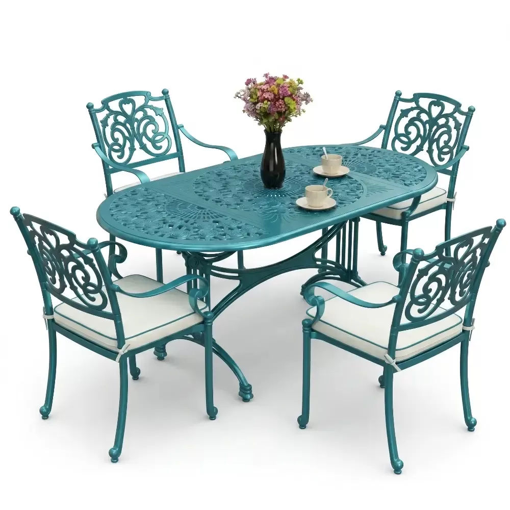 Alüminyum döküm materyalin doğal paslanmazlık özelliği sayesinde bu takım; havuz kenarları, sahil şeridi mekanları, geniş balkonlar ve restoran terasları için vazgeçilmezdir. Rüzgarın deviremeyeceği kadar stabil, yerini değiştirmenize imkan tanıyacak kadar ergonomik bir yapıya sahiptir. Bakım gereksinimi oldukça düşüktür; elektrostatik fırın boyası sayesinde sadece su ve yumuşak bir bez ile silinmesi, mobilyanızın fabrikadan çıktığı andaki ışıltısını koruması için yeterlidir. Hijyenik yüzey yapısı kir tutmaz ve dış ortamın yıpratıcı etkilerine karşı direnç gösterir.