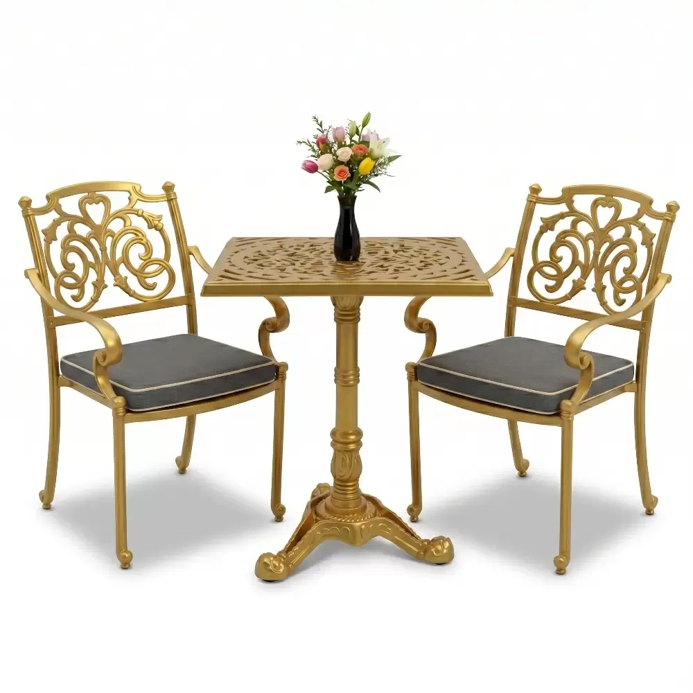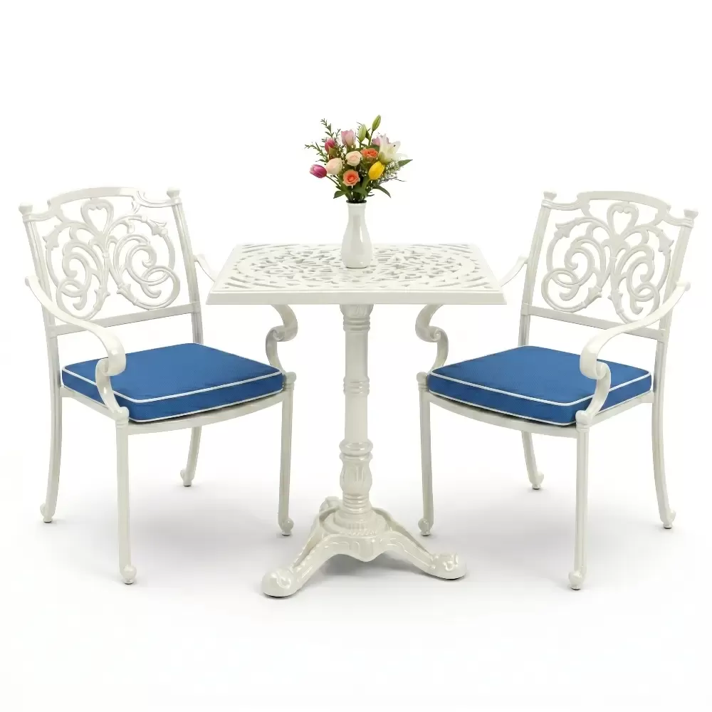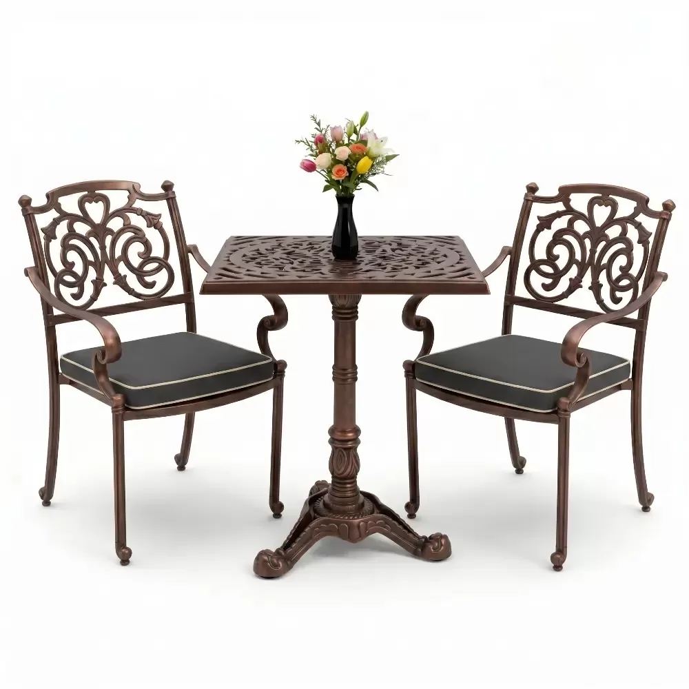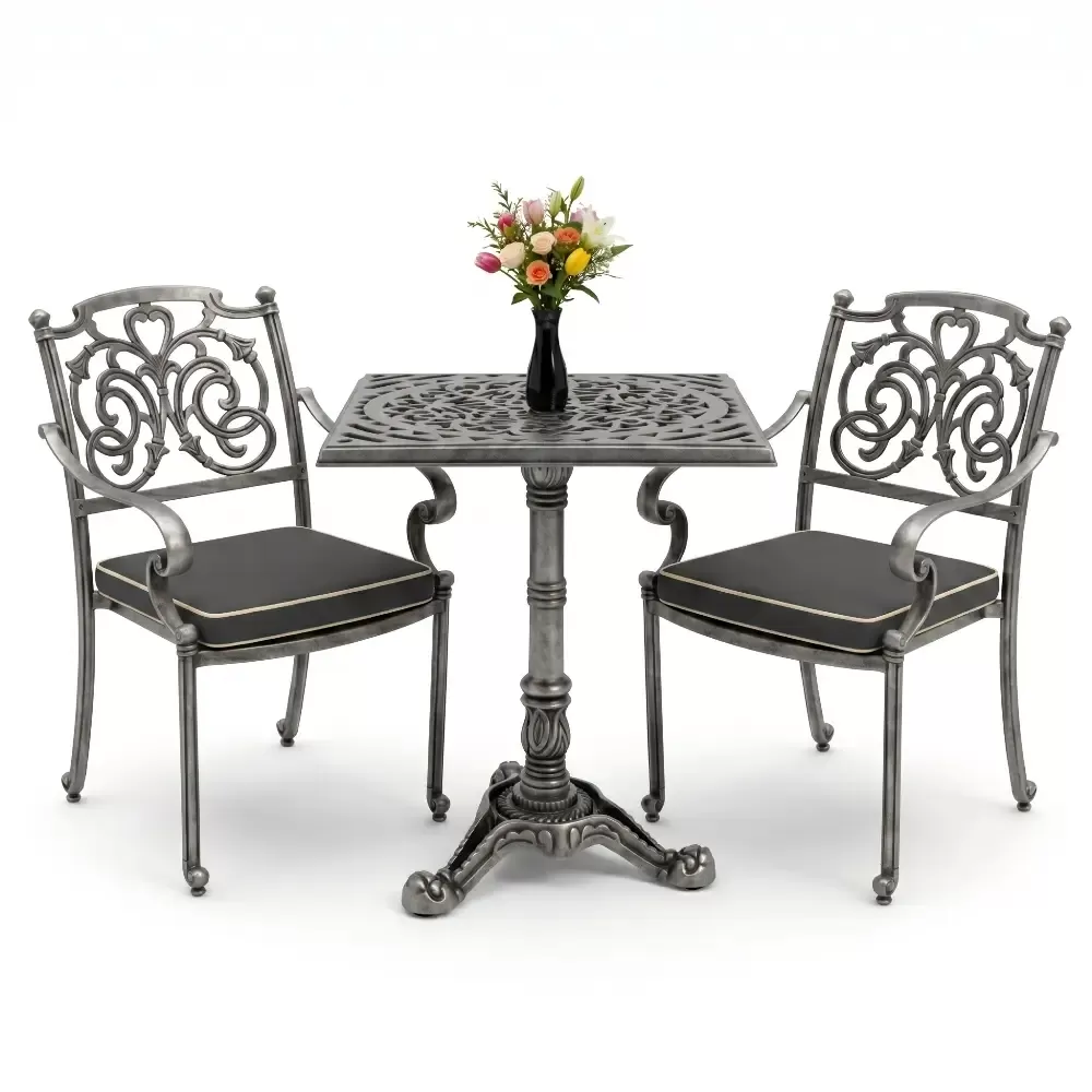 Kare Masa E:60 x D:60 x Y:76 cm 2 Kişilik alüminyum döküm masa ve sandalye takımı (Mindersiz Fiyatı)