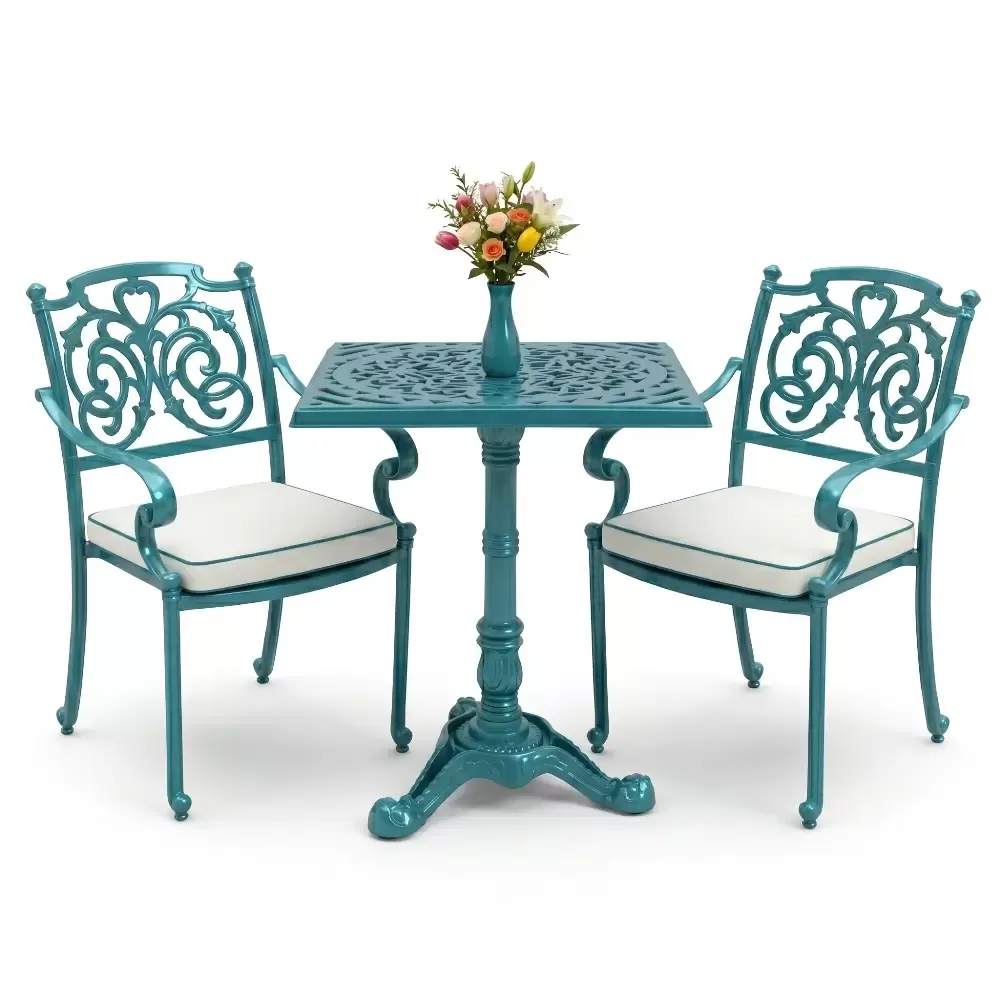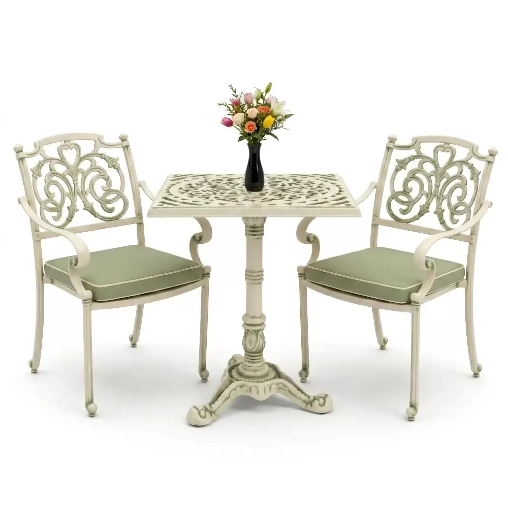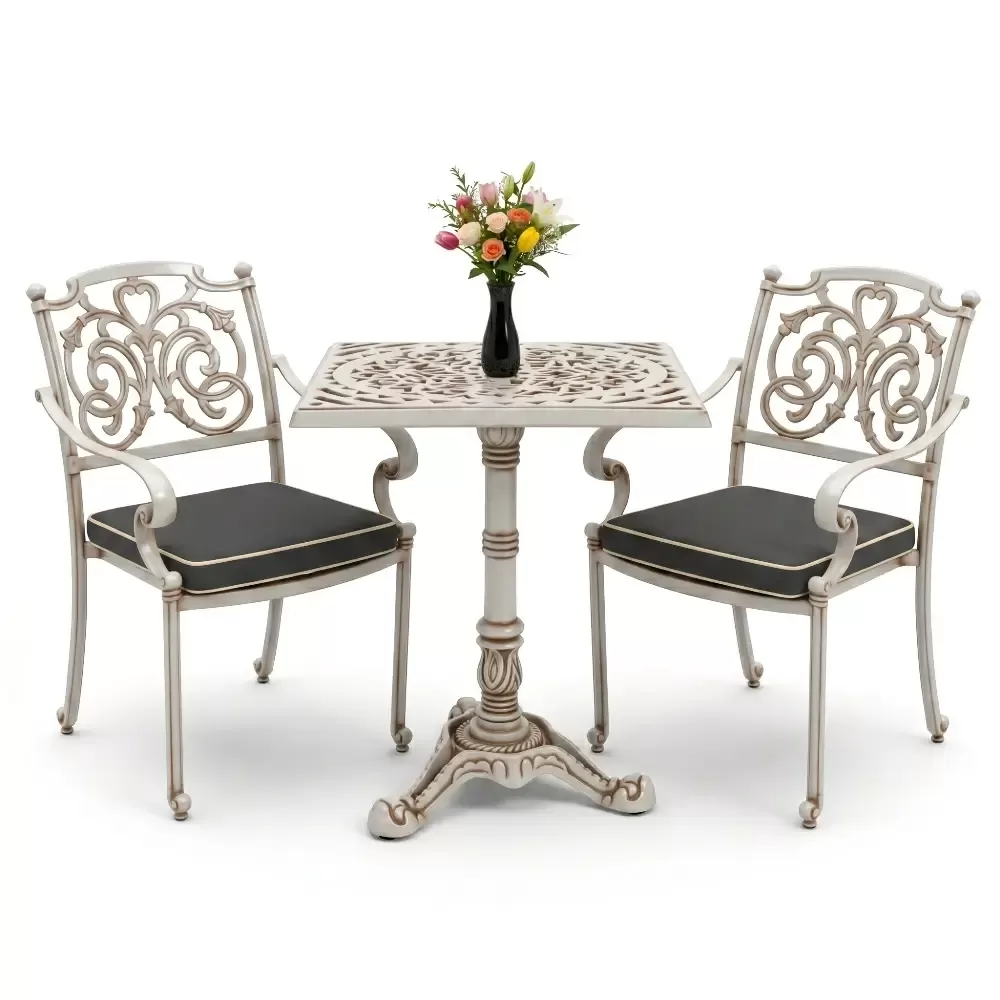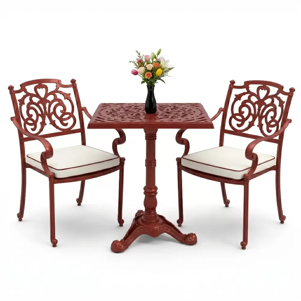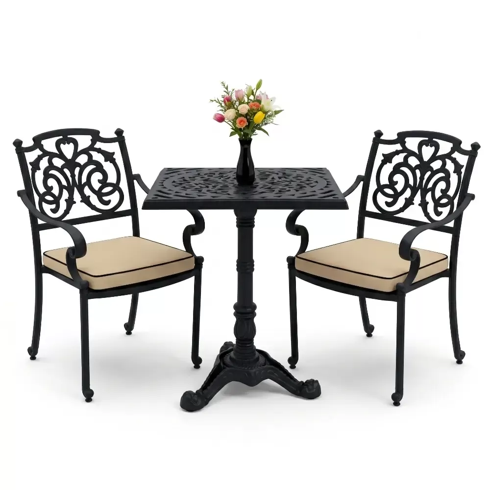 Kare Masa E:60 x D:60 x Y:76 cm 2 Kişilik alüminyum döküm masa ve sandalye takımı (Mindersiz Fiyatı)