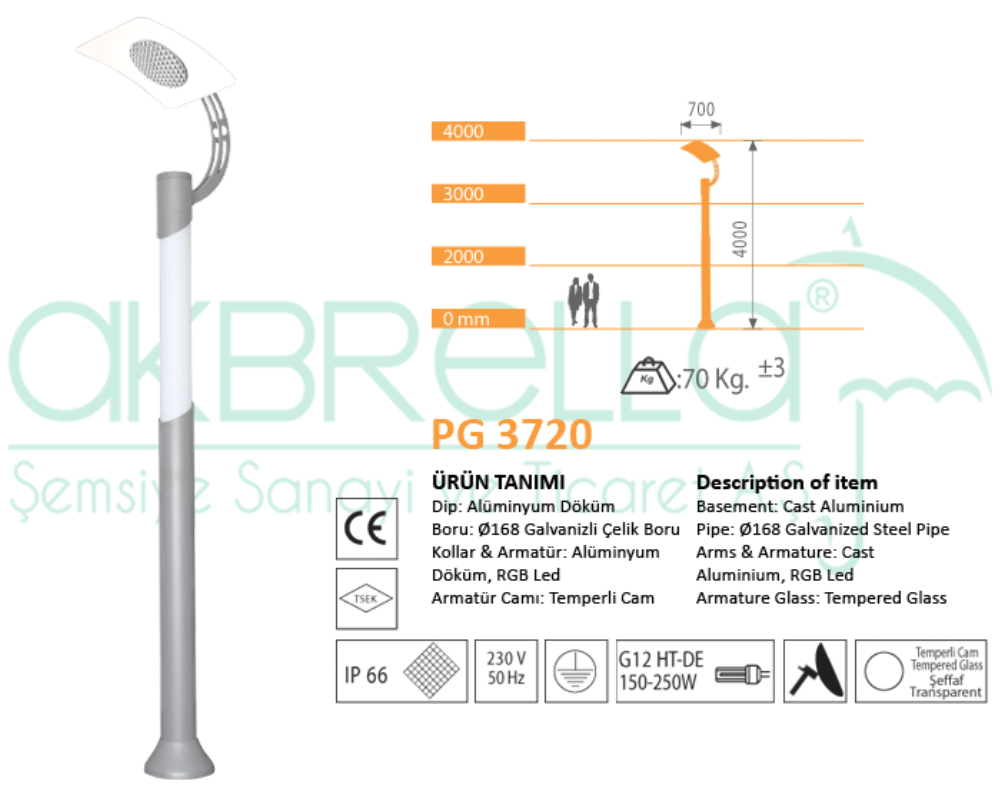- Ürün Adı: Akbrella PG 3720-A Aydınlatma direği