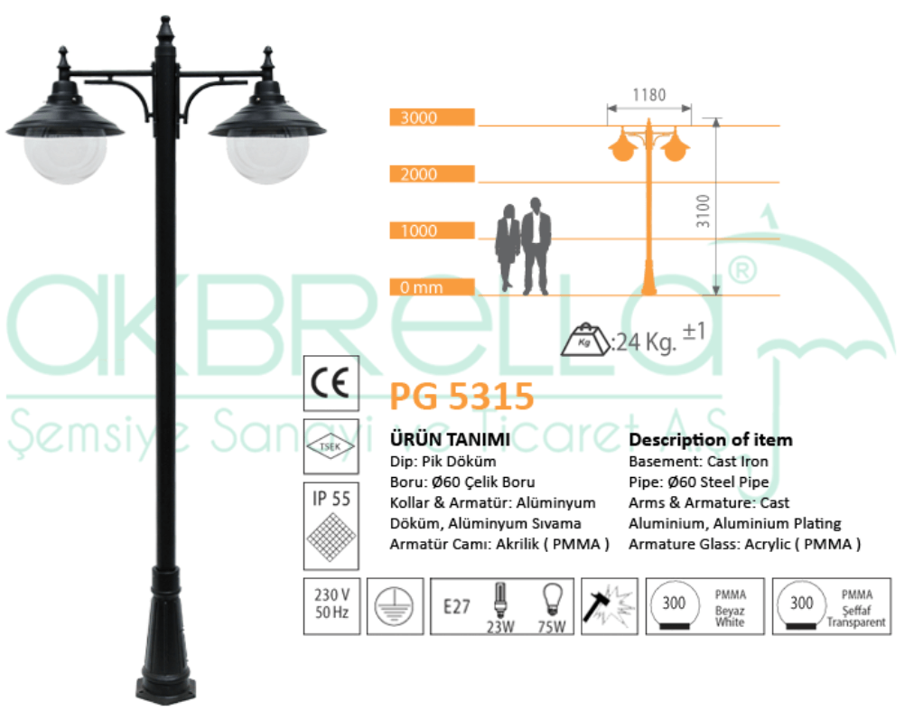 PG 5315 Model Dekoratif Bahçe Aydınlatma Direği