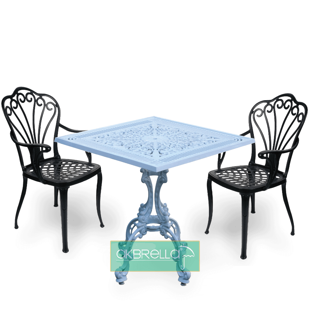 Bahçenizi, balkonunuzu veya terasınızı zarif ve şık bir atmosfere dönüştürecek olan PG 07TK B2 kodlu 2 Kişilik Döküm Ferforje Kollu Tavuskuşu Masa Sandalye Takımı, Akbrella kalitesiyle dış mekanlarınıza estetik ve konfor katıyor.