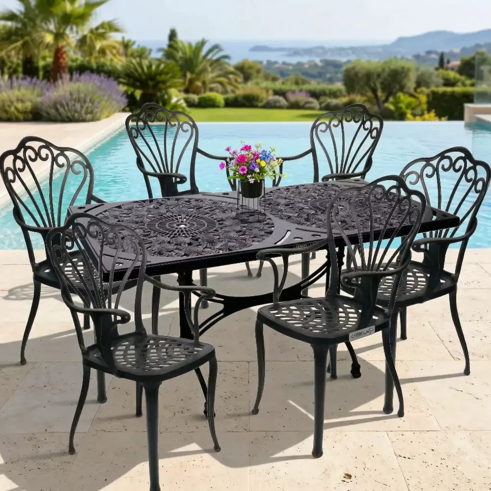 Alüminyum döküm takımlar demir ürünlerin aksine paslanmaz ve çürümezler. Çok daha uzun ömürlüdürler ve dış mekanın nemli hava koşullarına tam uyumludurlar.