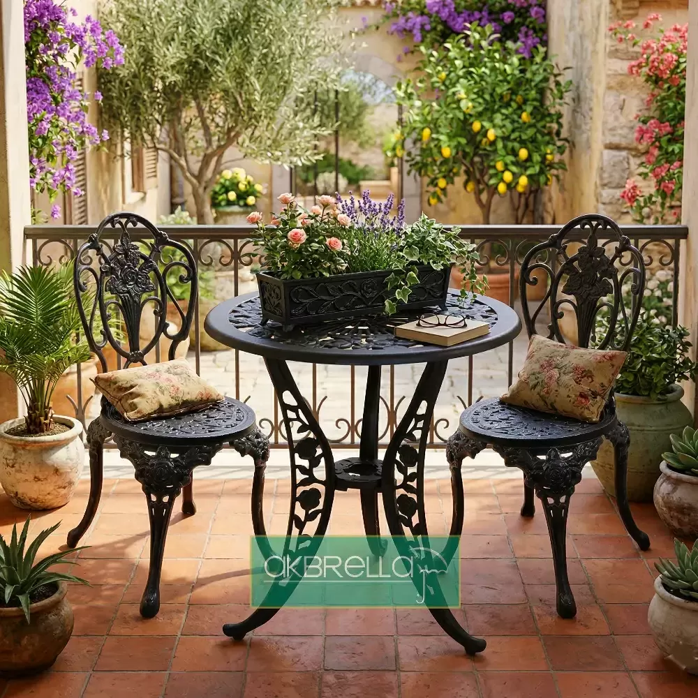 Dış mekan dekorasyonunda uzmanlaşan Akbrella, kendi üretim tesislerinde titizlikle hazırladığı PG 7515TK C2 kodlu döküm oturma grubu ile estetiği ve dayanıklılığı birleştiriyor. Romantik gül figürlerinin zarafetini 63 cm çapındaki yuvarlak döküm masasıyla sunan bu set; balkon, teras ve butik cafe işletmeleri için uzun ömürlü bir çözümdür.