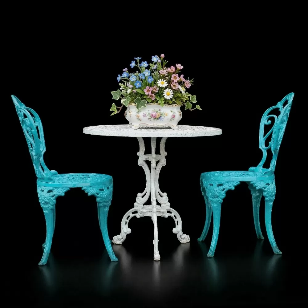 Dış mekan dekorasyonunda uzmanlaşan Akbrella, kendi üretim tesislerinde titizlikle hazırladığı PG 7510TK C2 kodlu döküm masa sandalye takımı ile zarafeti konforla birleştiriyor. Gül motiflerinin nostaljik estetiğini 75 cm çapındaki yuvarlak döküm masasıyla sunan bu set; bahçe, teras, balkon ve profesyonel cafe işletmeleri için uzun ömürlü ve şık bir çözümdür.