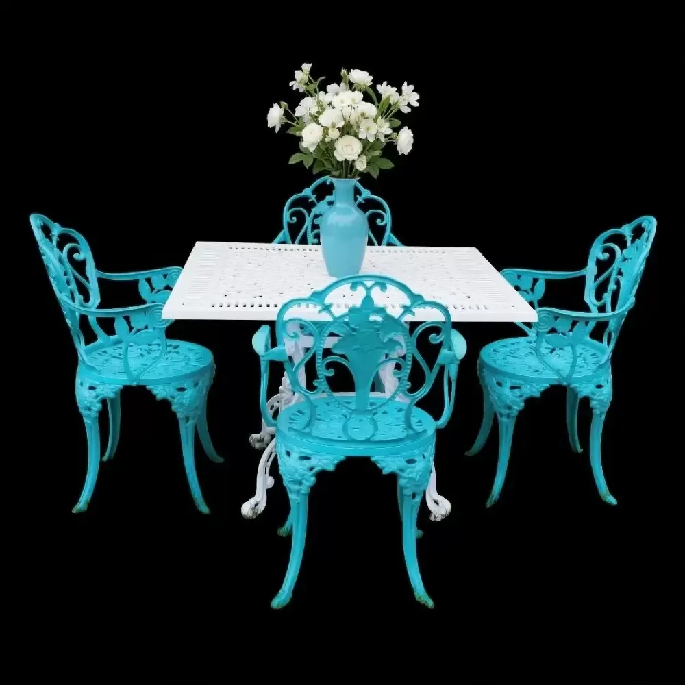 Akbrella markasının özenle tasarladığı PG 03TK D4 kodlu 4 Kişilik Döküm Ferforje Kollu Güllü Masa Sandalye Takımı, kare formu ve gül motifleriyle dış mekanlarınıza romantik ve zarif bir dokunuş katıyor. Hem estetik hem de dayanıklılığı bir araya getiren bu takım, bahçeniz, terasınız veya balkonunuz için mükemmel bir seçim.