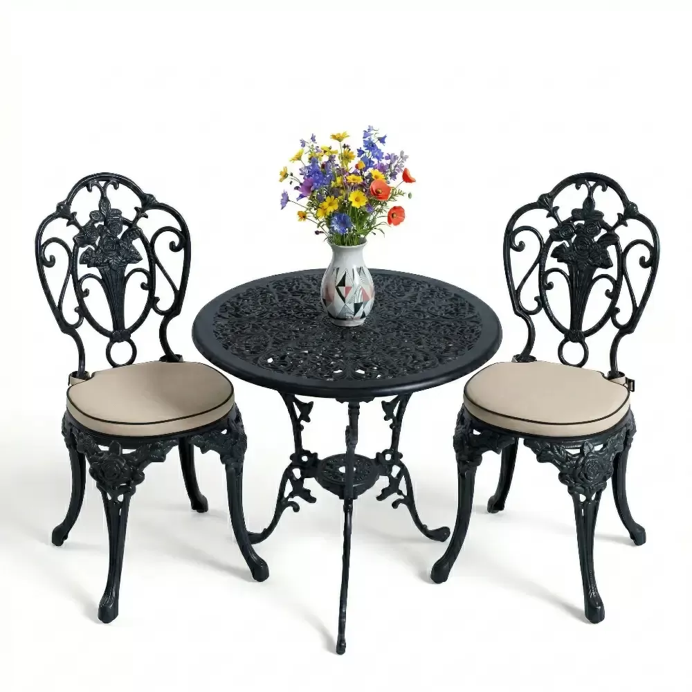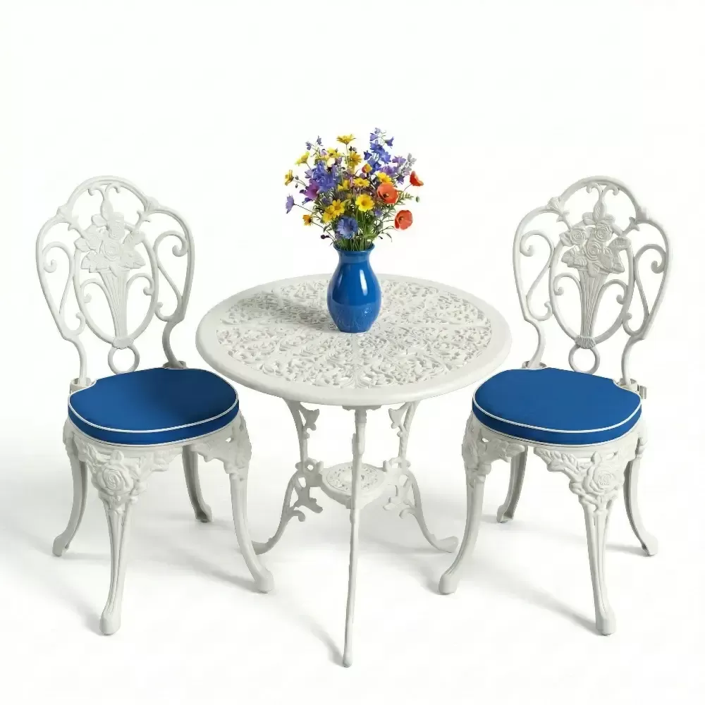 Ismini sandalyelerindeki ince iscilikle hazirlanmis kabartma gul motiflerinden alan Model 02, balkon ve teraslarinizda romantik bir atmosfer yaratmak icin tasarlandi. Cap 63 cm yuvarlak masasi ve 2 kisilik kapasitesiyle butik alanlarin vazgecilmezi olan bu takim, Akbrella kalitesini en kompakt formda sunar. Agir ve paslanmaya musait demir ferforje yerine, ETA 160 alasimli aluminyum dokum teknolojisiyle uretilen bu seri, hem hafiflik hem de omurluk dayaniklilik vaat eder.
