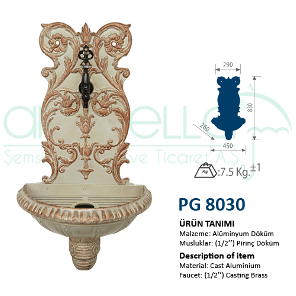 - Dayanıklılık: Cast döküm tekniği ile üretilen çeşme, dış etkenlere karşı son derece dayanıklıdır.