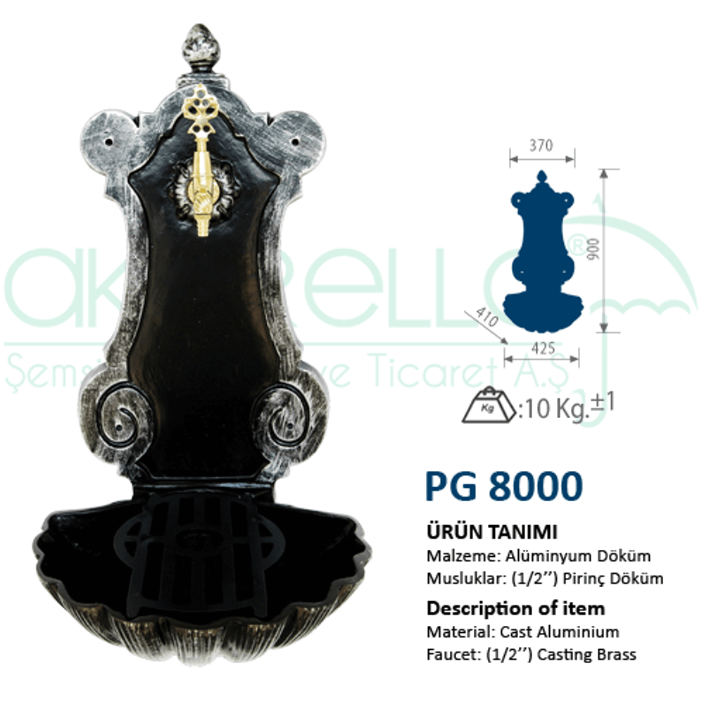 Akbrella markasının estetik ve kalite anlayışıyla üretilen MSH 17990-2 kodlu Alüminyum Döküm Bahçe Lavabolu Duvar Çeşmesi, dış mekanlarınıza Osmanlı döneminin tarihi dokusunu taşıyor. İstiridye kabuğu şeklindeki gider haznesi, eskitme modeli ve pirinç musluğuyla bu çeşme, bahçelerinizi, cami avlularınızı, parklarınızı ve piknik alanlarınızı benzersiz bir atmosfere kavuşturuyor.