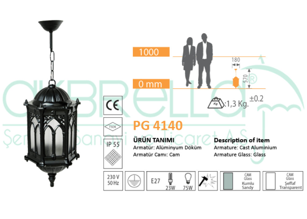 Osmanlı motifleriyle süslenmiş olan PG 4140, mekanlarınıza tarihi bir dokunuş katar. Ferforje detayları ve zincirli yapısı, ürüne ayrı bir zarafet ve otantiklik kazandırır. Aşağı doğru bakan tasarımı, ışığın odaklanmasını sağlayarak istenilen alanın etkili bir şekilde aydınlatılmasına yardımcı olur.