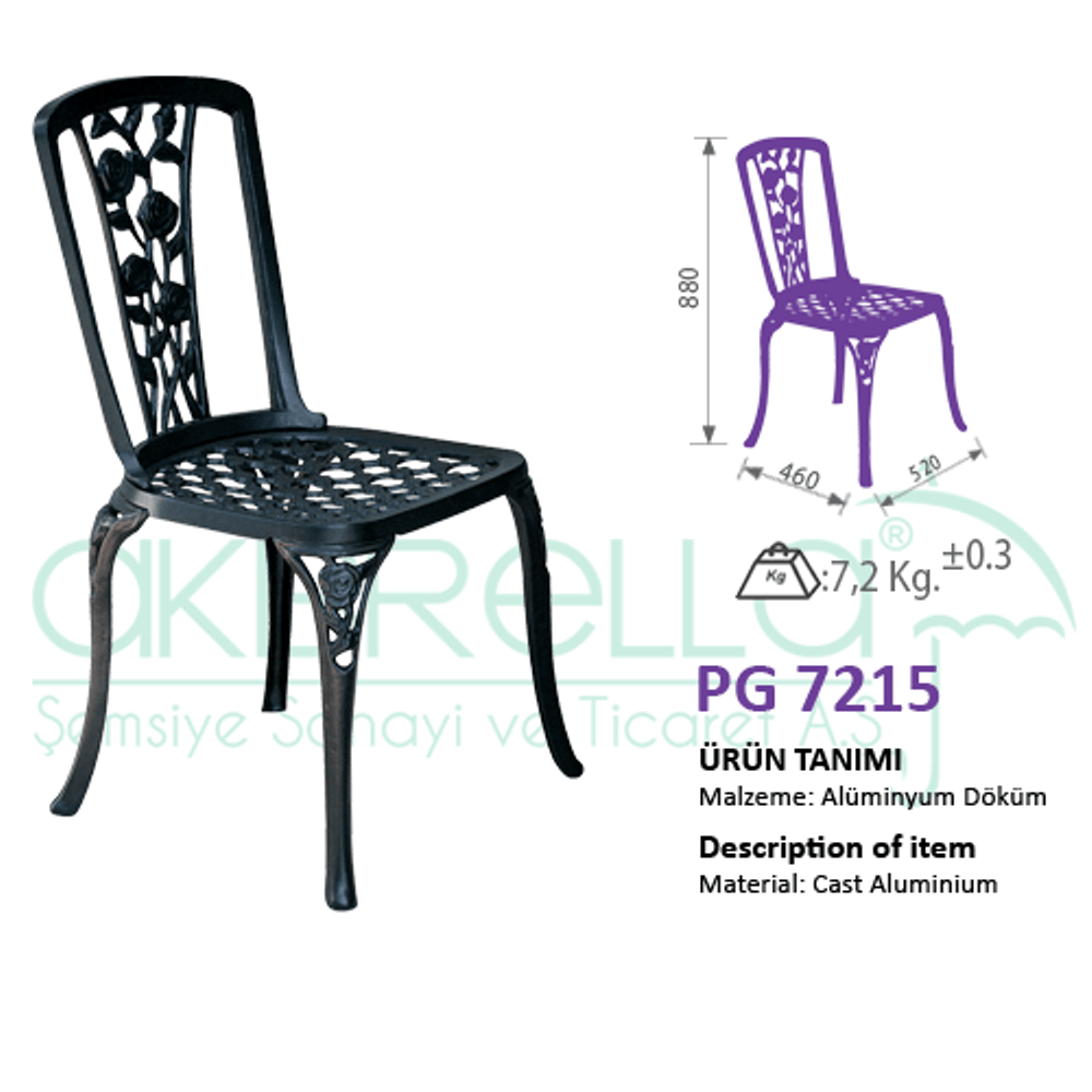 Akbrella markası olarak, dış mekanlarınıza estetik ve konfor katacak MSH 17215 Alüminyum Döküm Salkım Gül Kolsuz Ferforje Sandalye modelimizi sunmaktan gurur duyuyoruz. Bu sandalye, zarif tasarımı ve üstün dayanıklılığı ile bahçe, teras, balkon ve kafe gibi dış mekanlarınız için ideal bir seçimdir.