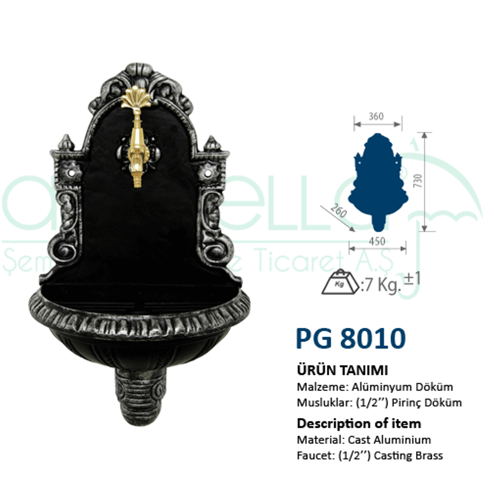 - Ürün Adı: Alüminyum Döküm Bahçe Lavabolu Duvar Çeşmesi