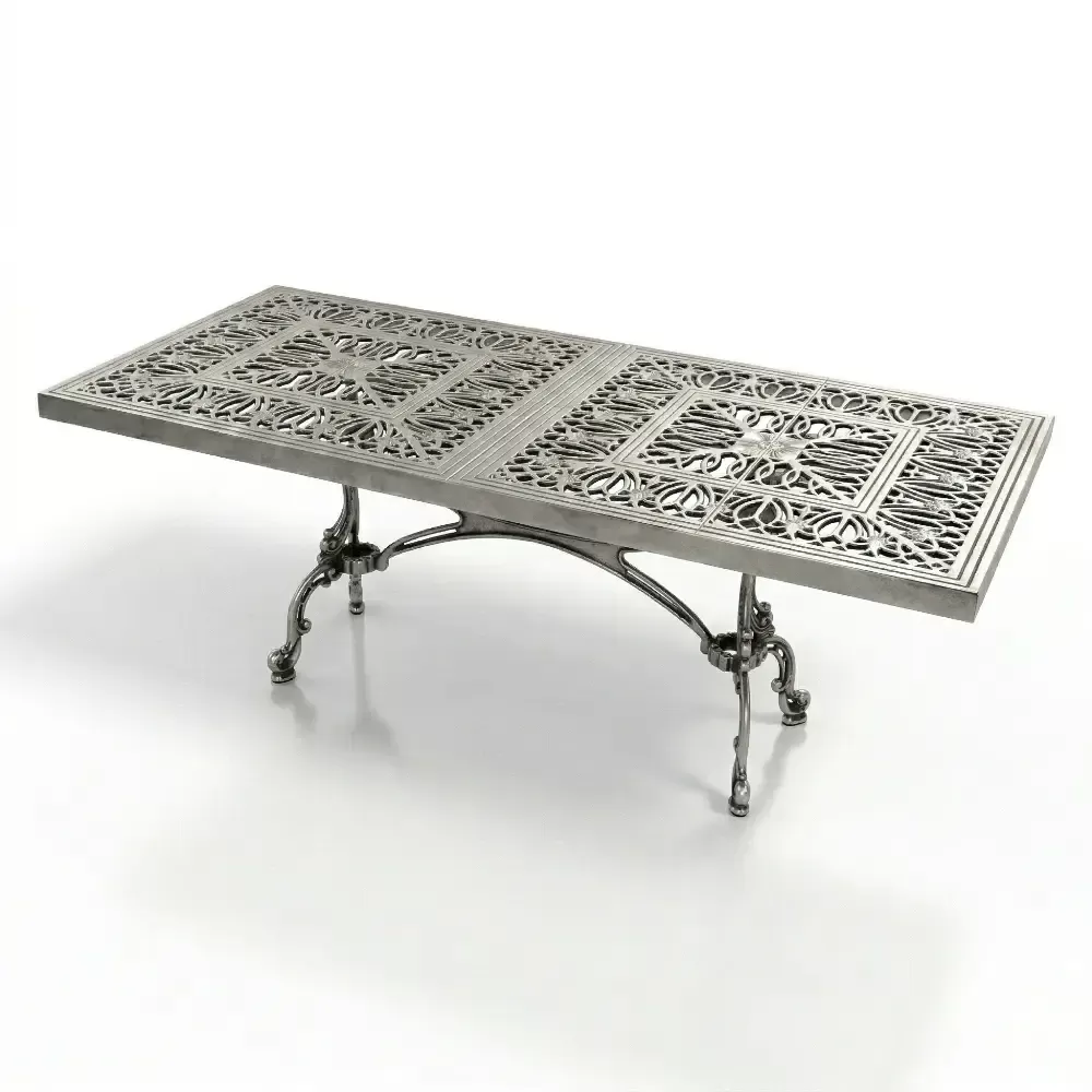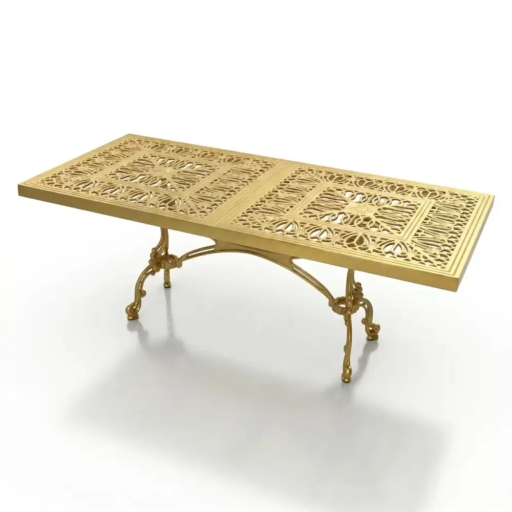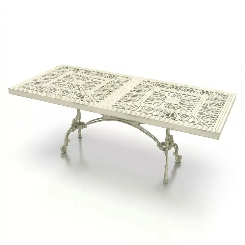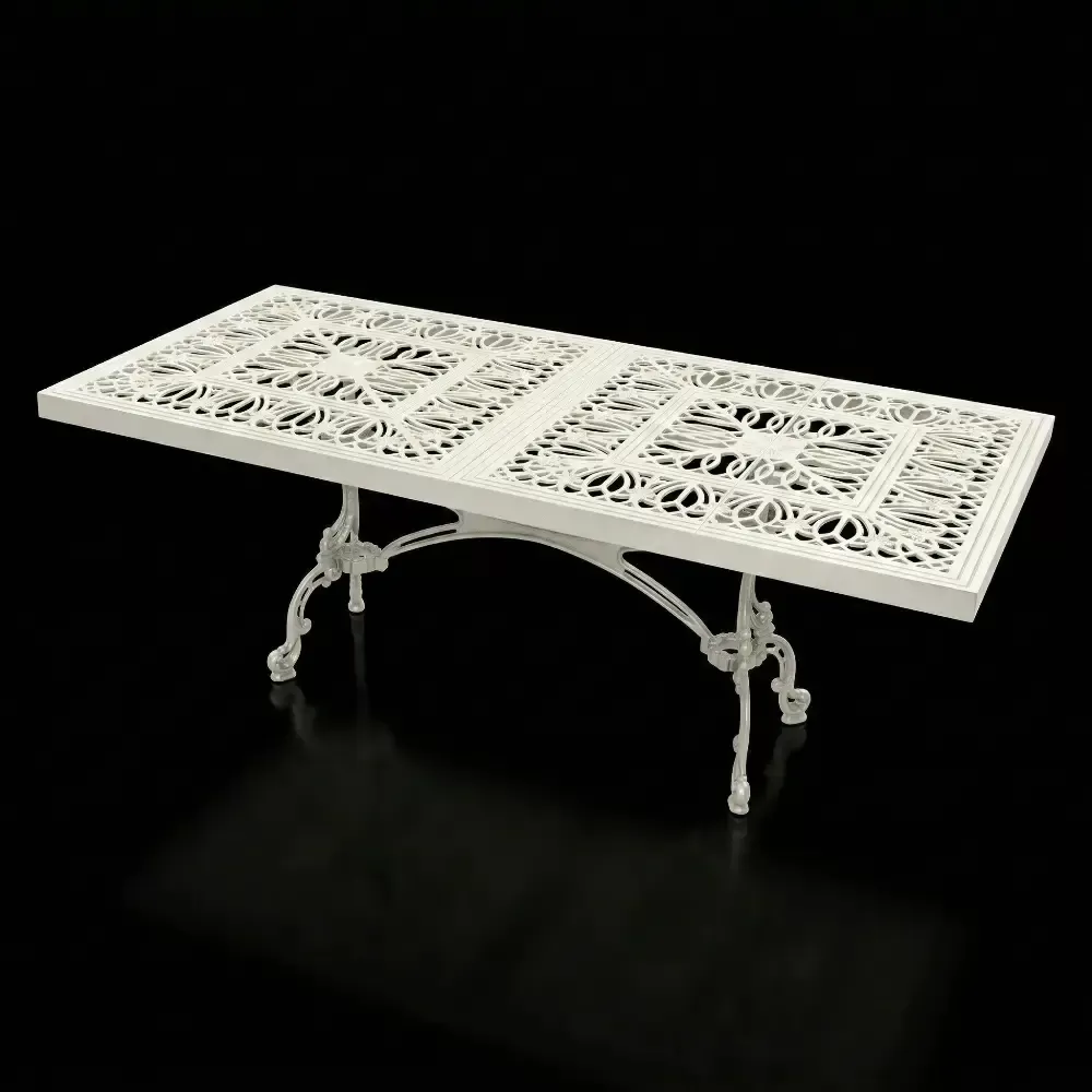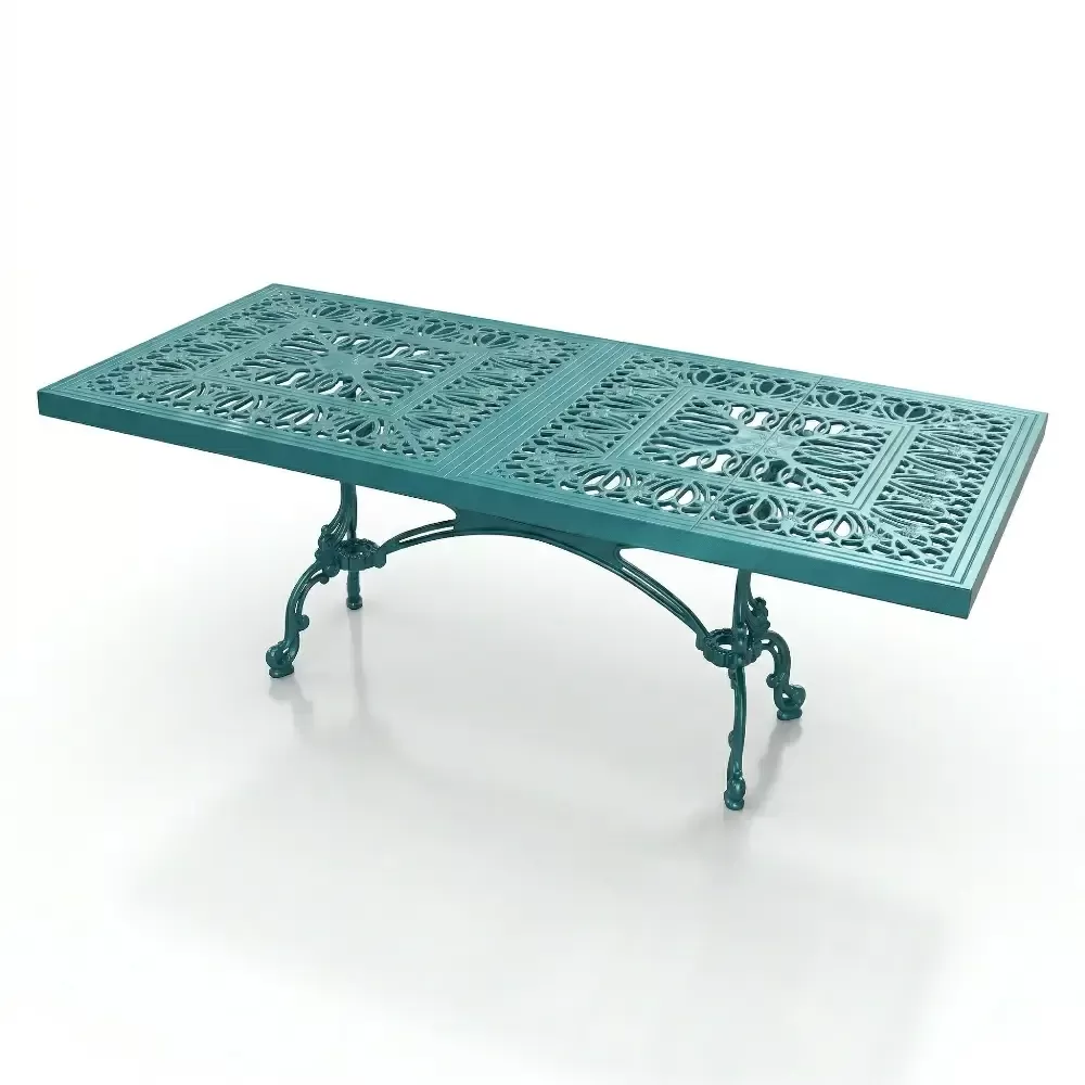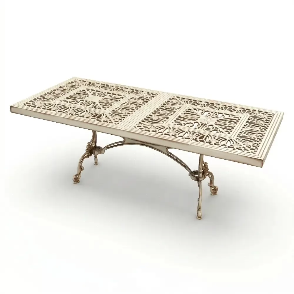 Akbrella markasinin uretim hattinda ozel olarak tasarlanan LXY 345 model döküm masa, 100x200 cm boyutlari ile dis mekanlarda gorkemli bir durus sergiler. Osmanli figurlerinin zarif dokunuslariyla zenginlestirilen bu dev dikdortgen tasarim, sadece bir mobilya degil ayni zamanda bahceleriniz icin sanatsal bir eser niteligi tasir. Yuksek dayanikli aluminyum alasimi sayesinde kutlece agir ancak korozyona karsi tam direnc gosteren bir yapiya sahiptir.