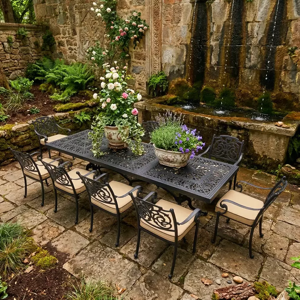 Alüminyum döküm mobilyalar paslanmaz ve korozyona uğramazlar. Demir mobilyaların aksine yağmurdan etkilenerek çürüme yapmaz ve her yıl boyama zahmeti gerektirmezler.