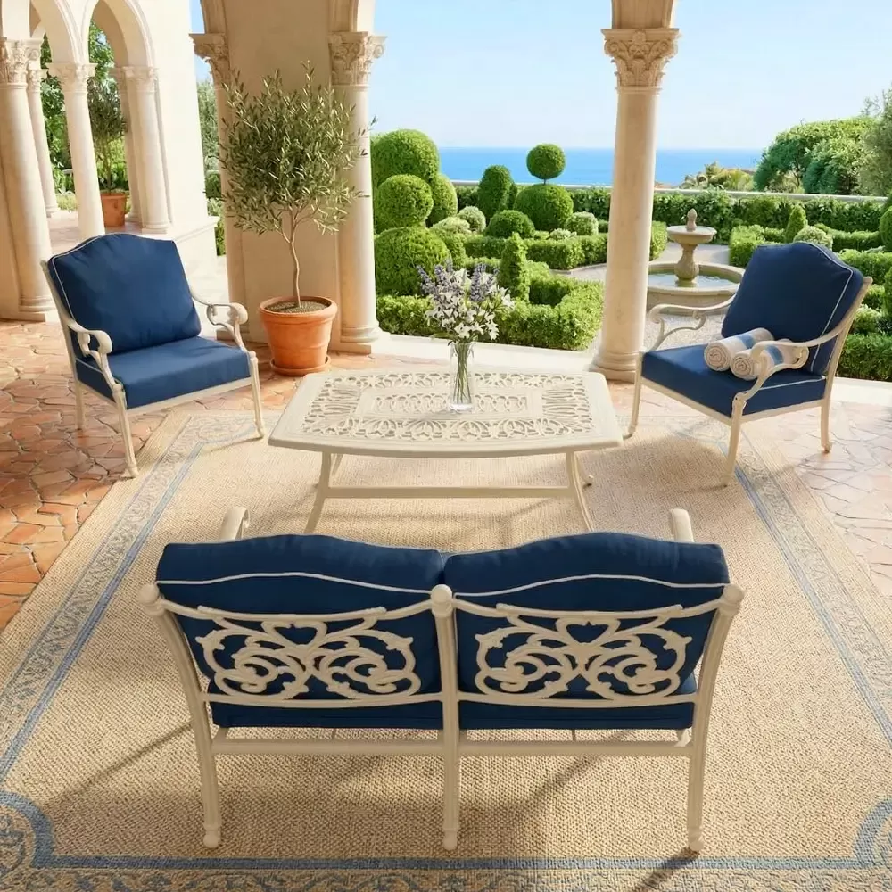 LXY 210: 4 Kişilik Kelebek Döküm Bahçe Oturma Seti - Lacivert Zarafet