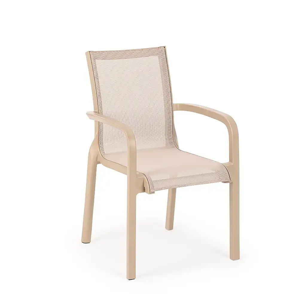 Plastik Fileli Koltuk 5; eviniz, oteliniz, kafeniz, restoranınız, havuz başı alanlarınız veya etkinlik mekanlarınız için ideal bir oturma çözümüdür. Modern çizgileri, zarif bej rengi, ergonomik konforu ve üstün dayanıklılığıyla hem estetik beklentilerinizi karşılar hem de uzun süreli pratik bir kullanım sunar. Şimdi Akbrella güvencesiyle mekanlarınıza değer katın!