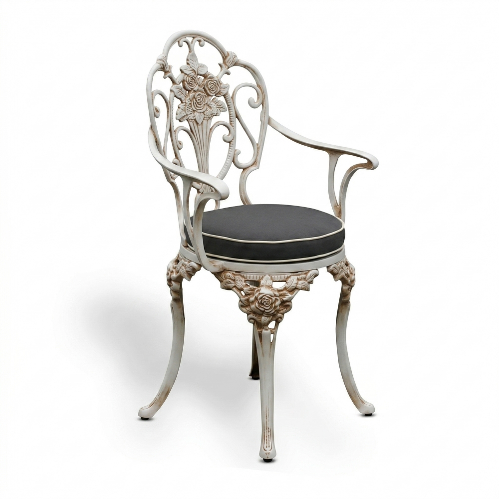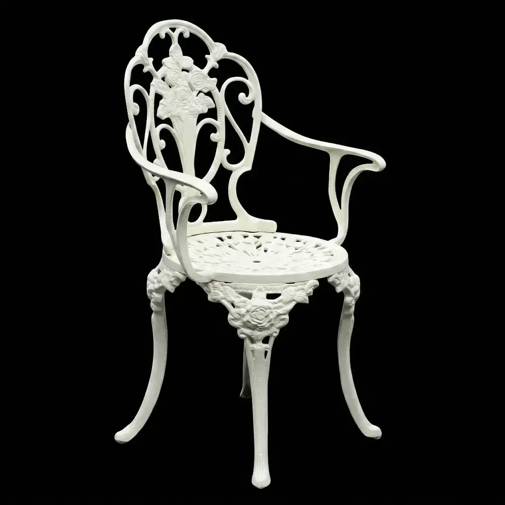 Paslanmaya ve korozyona karşı %100 dirençli olan alüminyum döküm gövde, elektrostatik fırın boya ile dış hava koşullarına karşı tamamen zırhlandırılmıştır. Kollu tasarımı sayesinde vücut ergonomisini destekleyerek konforlu bir oturum sağlarken, 6,75 kg ağırlığı ile hem hafif ve taşınabilir hem de rüzgara karşı stabil bir yapı sergiler. Beyaz statik boyası ile modern ve ferah bir görünüm sunar.
