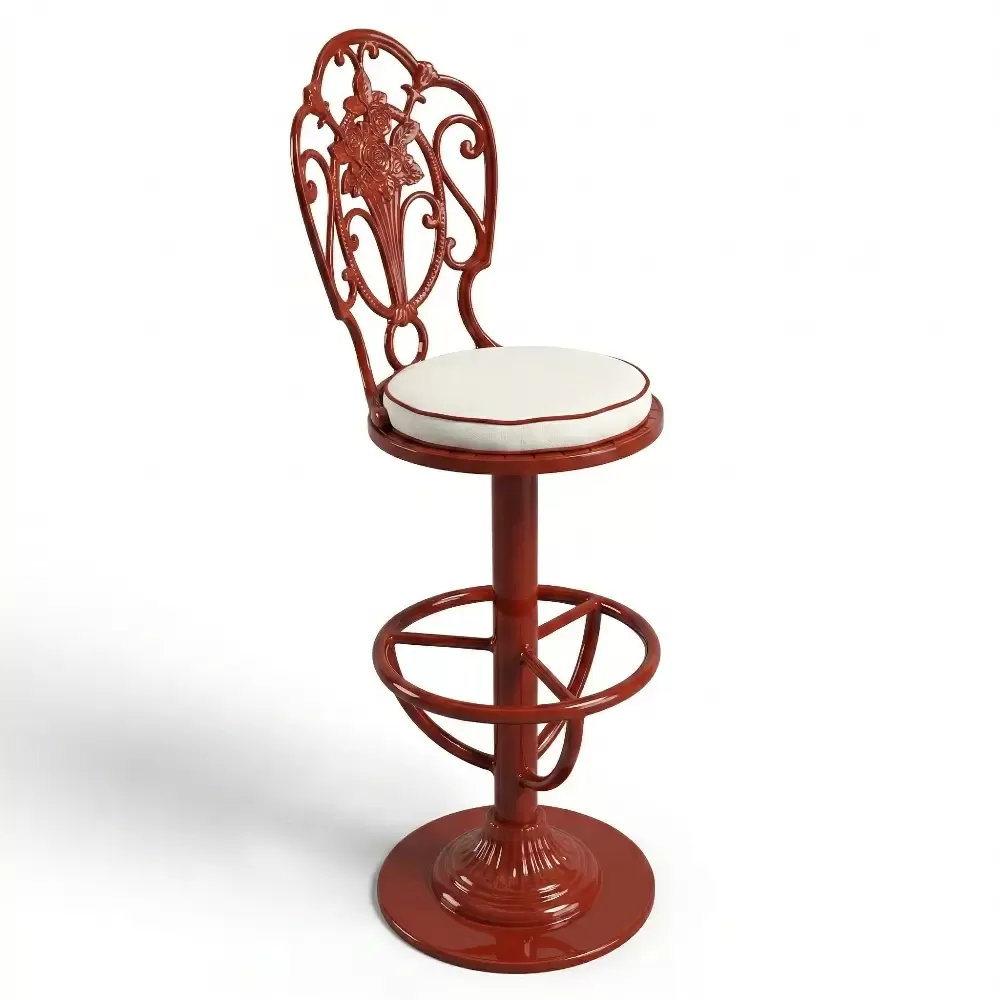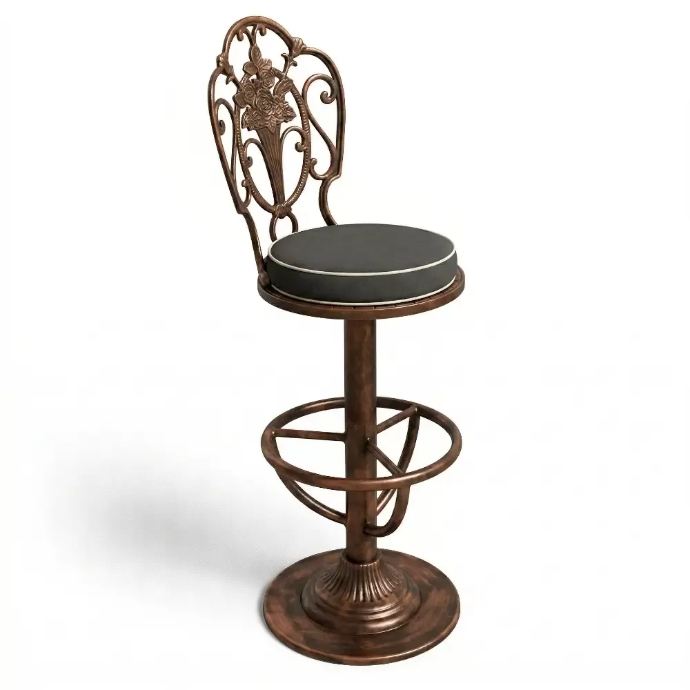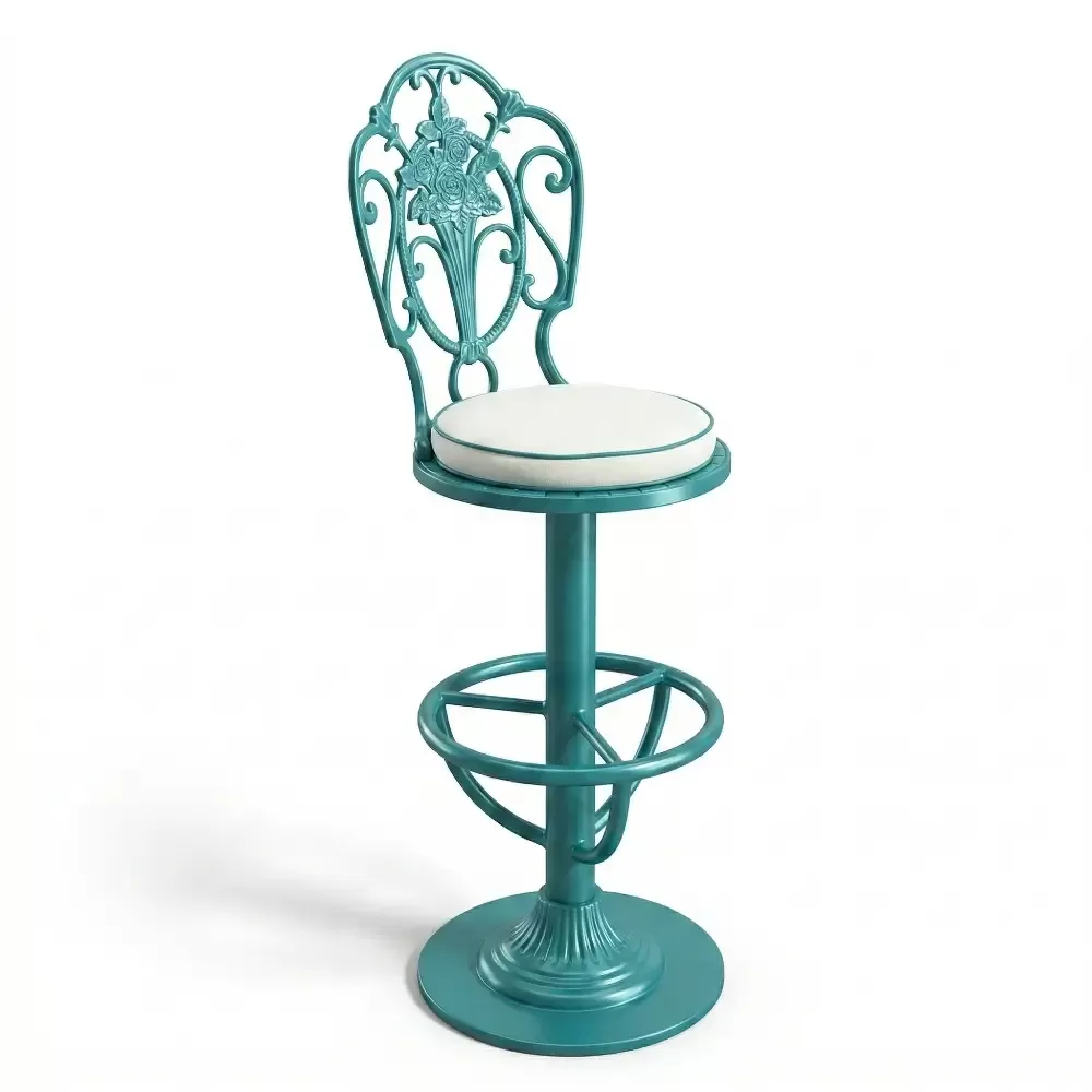 Paslanmaya ve korozyona karşı tam dirençli olan %100 alüminyum döküm gövde, elektrostatik fırın boya ile dış hava koşullarına karşı tamamen zırhlandırılmıştır. Ahşap kombine renk seçeneğiyle hem doğal hem de antika bir hava sunan bu bar sandalyesi, yüksek ağırlığı sayesinde bar ortamlarında ihtiyaç duyulan stabiliteyi ve güveni sağlar. Ergonomik oturum yapısı ve yüksek bacak formu, uzun süreli kullanımlarda konforu ön planda tutar.