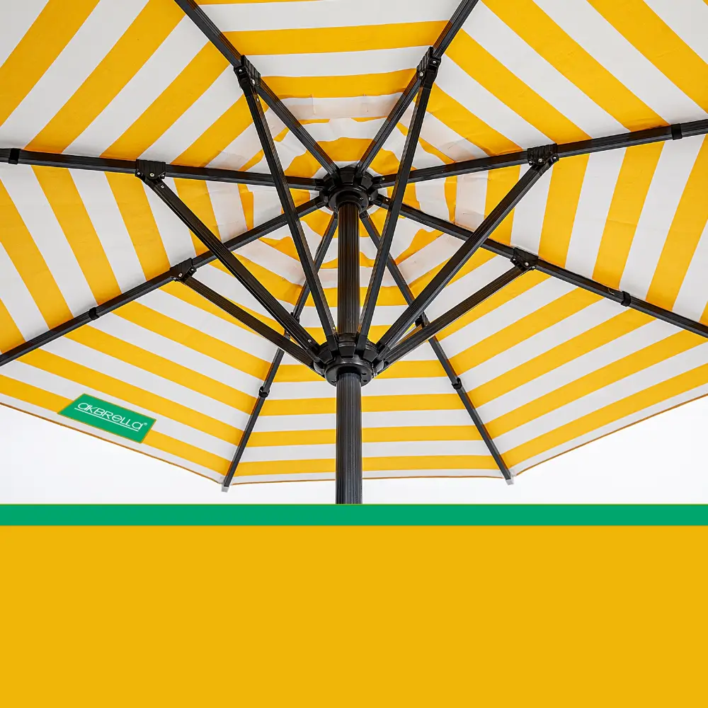 - Kollar: Beyaz boyalı, dirençli alüminyum kollar, şemsiyenin kolayca açılıp kapanmasını ve rüzgara karşı dayanıklı olmasını sağlar.