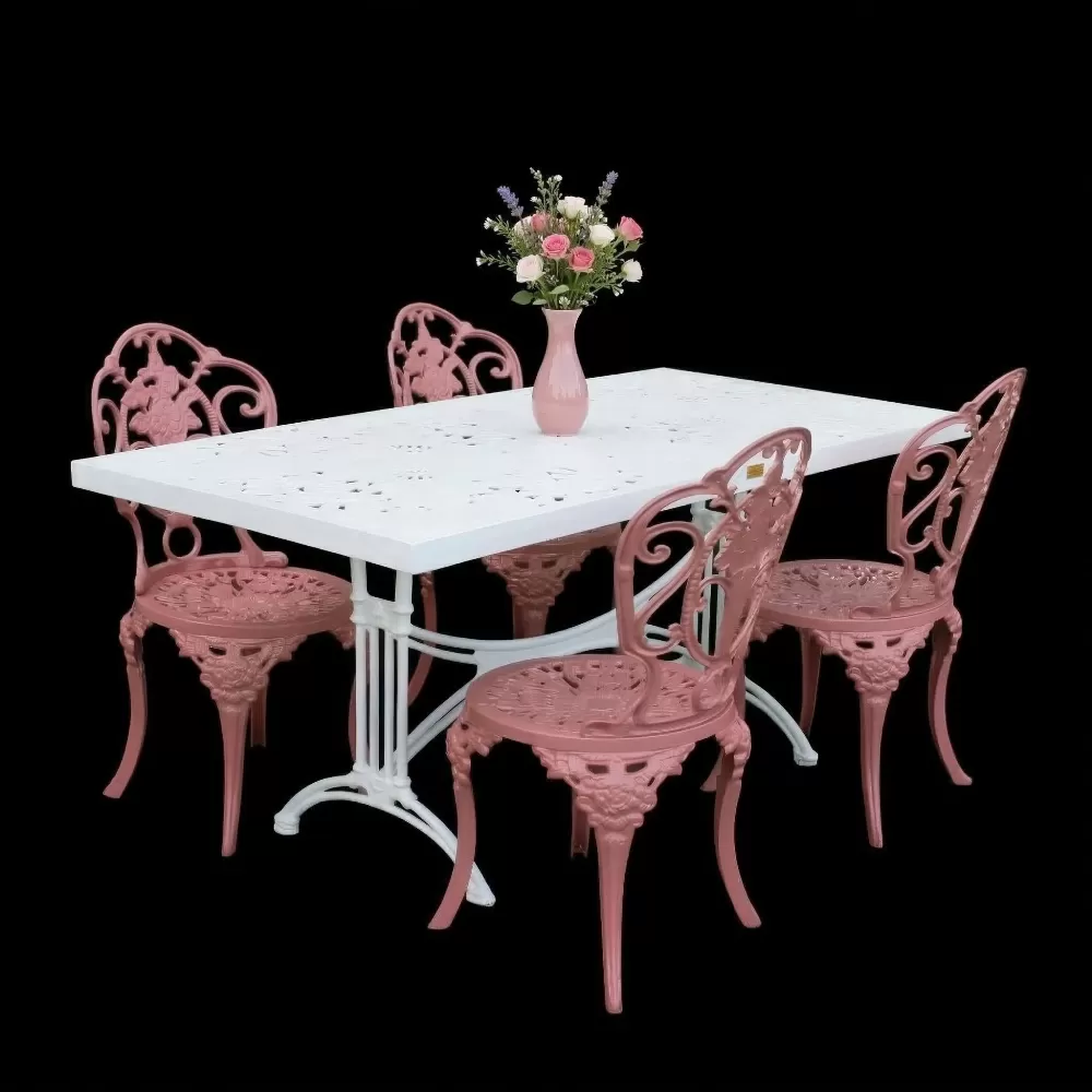 Dış mekan dekorasyonunda uzmanlaşan Akbrella, kendi üretim tesislerinde titizlikle hazırladığı PG 05TK C4 kodlu döküm oturma grubu ile estetiği ve dayanıklılığı birleştiriyor. Nostaljik gül figürlerinin zarafetini 60x120 cm boyutlarındaki dikdörtgen döküm masasıyla sunan bu set; bahçe, teras, balkon ve profesyonel cafe işletmeleri için uzun ömürlü bir çözümdür.