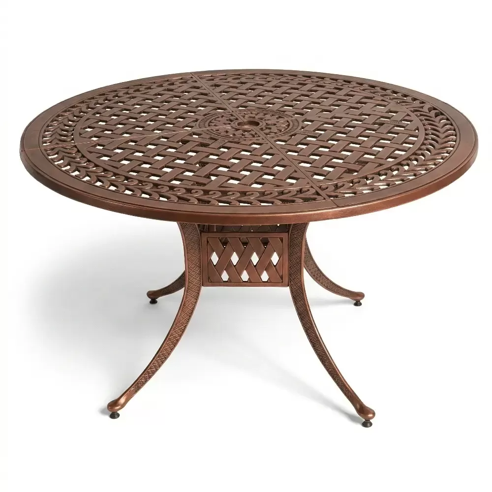 Dış mekan dekorasyonunda öncü Akbrella, kendi üretim tesislerinde titizlikle hazırladığı MSH 17533 kodlu yuvarlak bahçe masasını sunar. 160 cm çapındaki devasa yüzeyi ve kristal figürlü örme deseniyle bu ürün, geniş bahçelerden lüks restoranlara kadar her alanda ihtişamlı ve kalabalık davetler için kusursuz bir atmosfer oluşturur.
