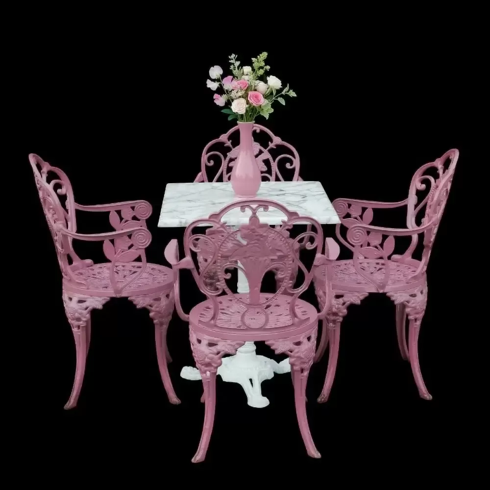 Dış mekan dekorasyonunda uzmanlaşan Akbrella, kendi üretim tesislerinde titizlikle hazırladığı PG 7525TK D4 kodlu döküm masa sandalye takımı ile zarafeti konforla birleştiriyor. Gül motiflerinin estetiğini 60x60 cm boyutlarındaki kompakt dörtgen masasıyla sunan bu set; bahçe, teras, balkon ve profesyonel cafe işletmeleri için uzun ömürlü ve şık bir çözümdür.