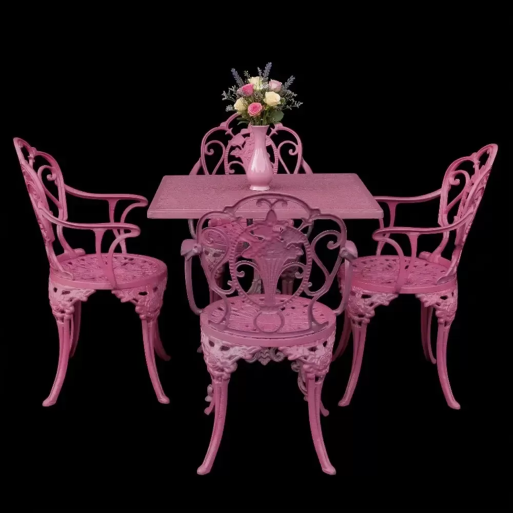 Dış mekan dekorasyonunda uzmanlaşan Akbrella, kendi üretim tesislerinde titizlikle hazırladığı PG 07TK D4 kodlu döküm masa sandalye takımı ile zarafeti konforla birleştiriyor. Gül motiflerinin estetiğini 70x70 cm boyutlarındaki kare masasıyla sunan bu set; bahçe, teras, balkon ve profesyonel cafe işletmeleri için uzun ömürlü ve şık bir çözümdür.