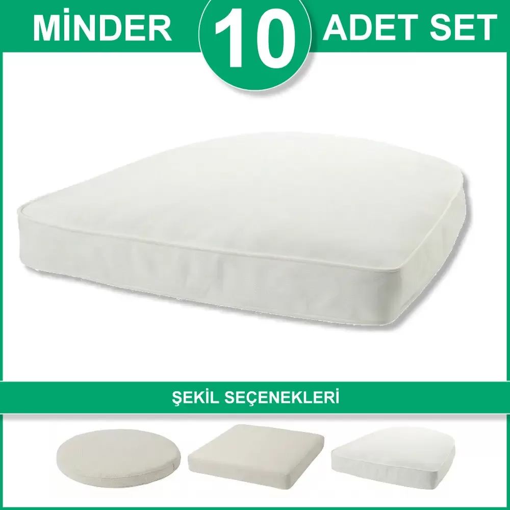 Toplu pakette sert sünger dolgulu polyester sandalye minderi, Paketteki minder sayısı: 10
