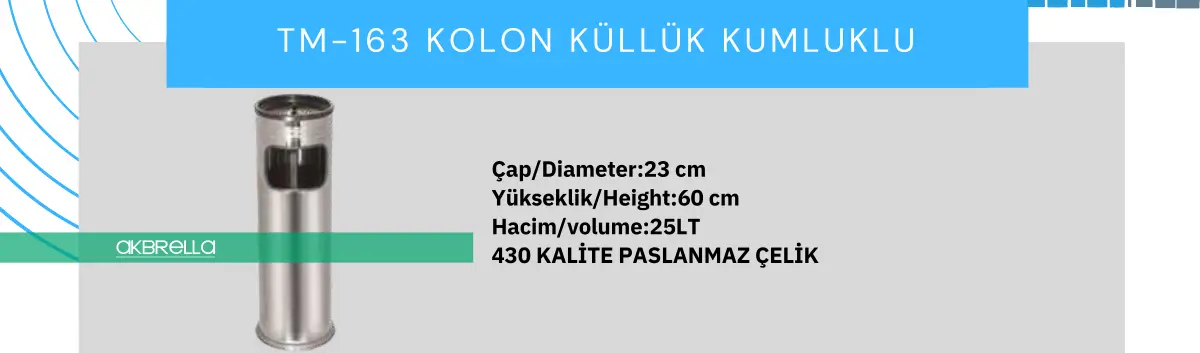 Yaşam alanlarınızda hijyen ve düzeni bir araya getiren Akbrella markasının TRS 163 kodlu küllüklü silindir çöp kovası ile tanışın!